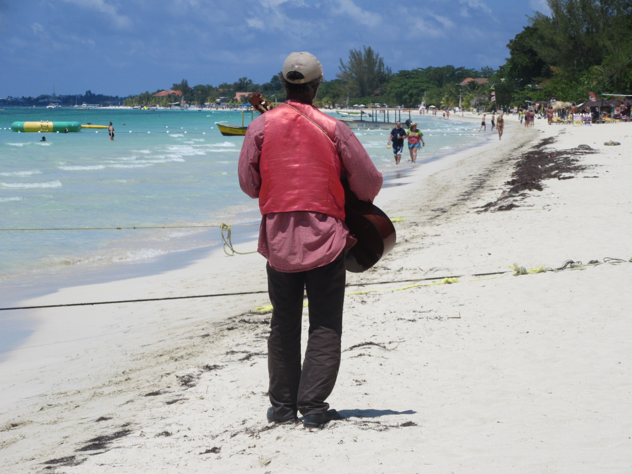 I took my soup home and ate half then went to the beach for a bit and watched a lone musician amble along.