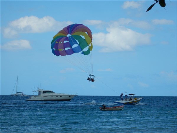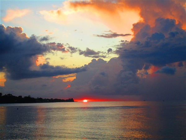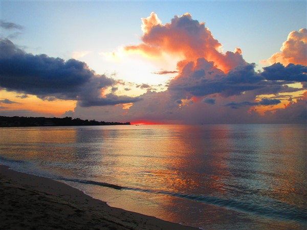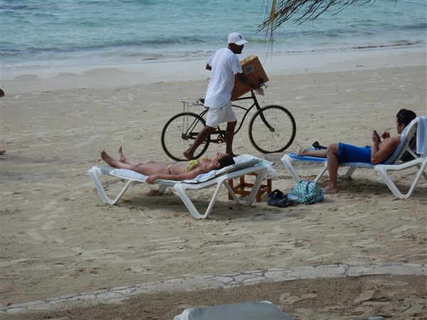 Guinip season is almost over but I was able to find some from a beach vendor. Lots of starfish in the ocean. Rains blew through twice in the afternoon. Took a route taxi to town to buy some basic supplies and caught a nice sunset on the beach just up from the Negril River. Walked up and had dinner at Travelers overlooking the ocean with boardie JDUB. Coco jacuzzi still working fine and no one else using it
