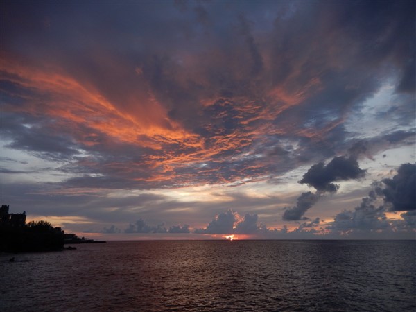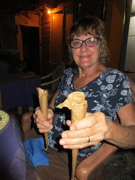 Saturday sunset on the cliffs and red snapper filet at Quality Sea Breeze Restaurant. We also stopped in to see our friend Markie in Red Ground. Breakfast at Pee Wees.