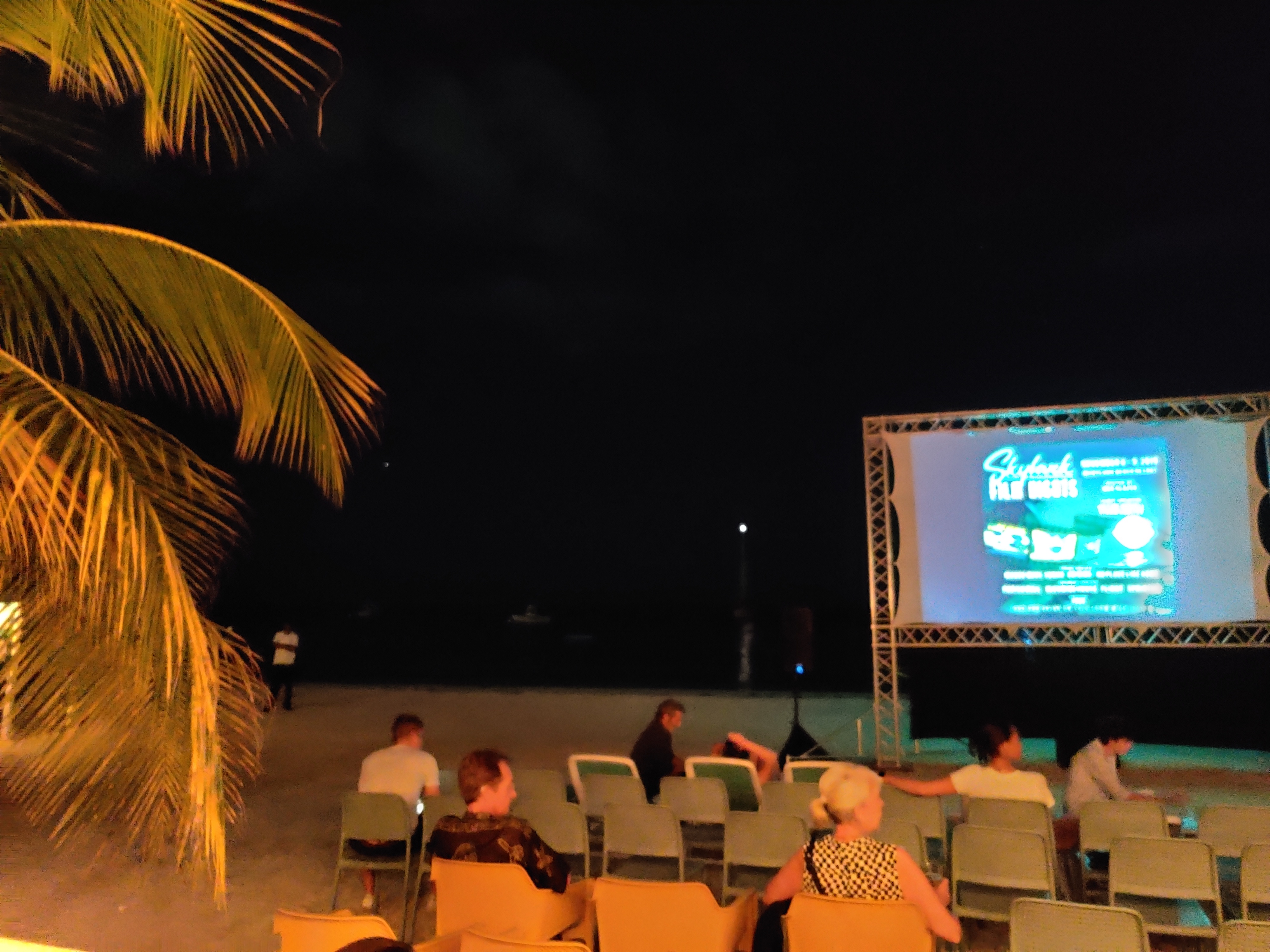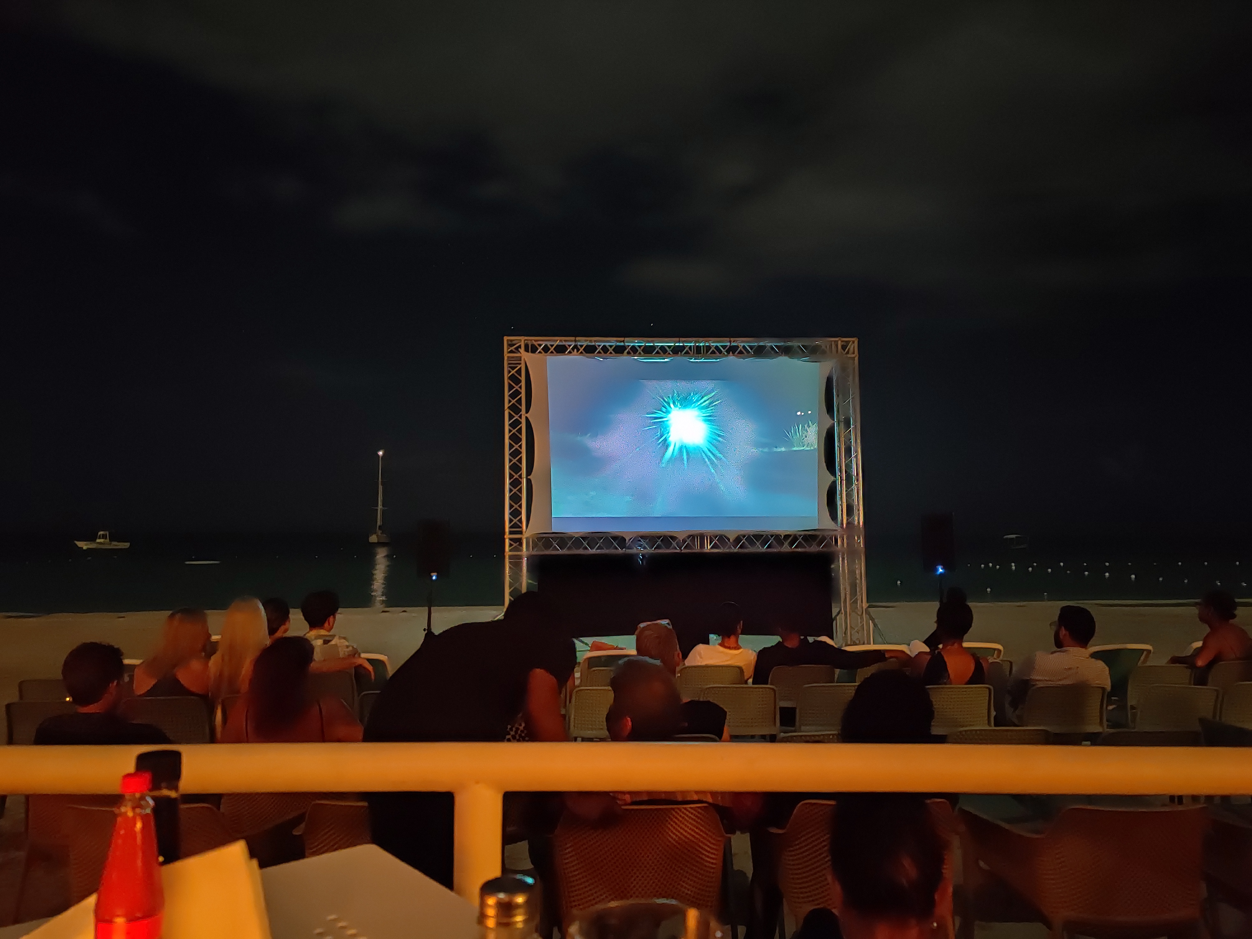 On the beach! The sea is the background for our theatre tonight! The films are starting! What a night!