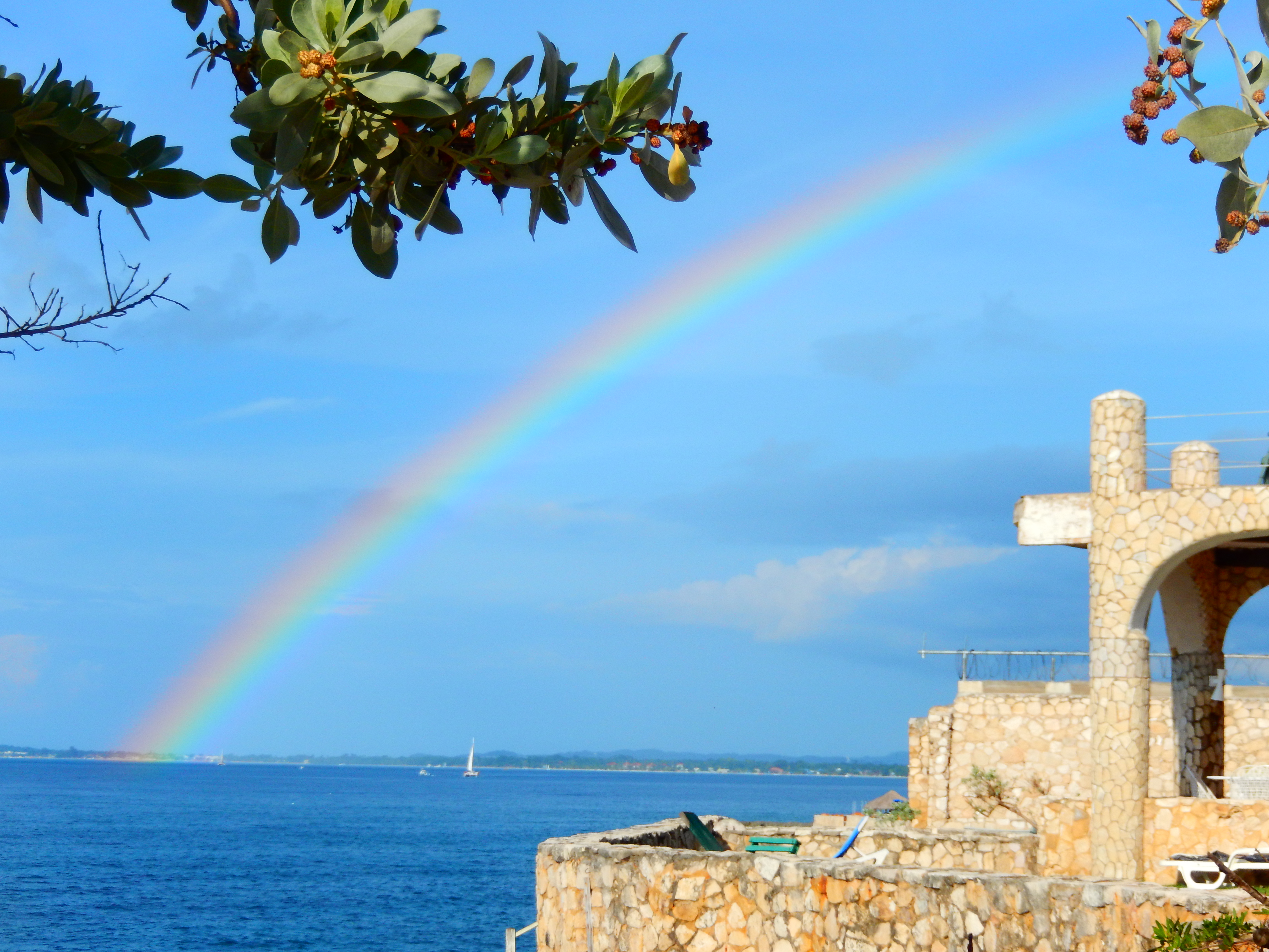 Over the past 10 days or so we saw at least 3 different rainbows following afternoon rains. The one photos shows a boat going through the "pot of gold". All photos taken from HSH.