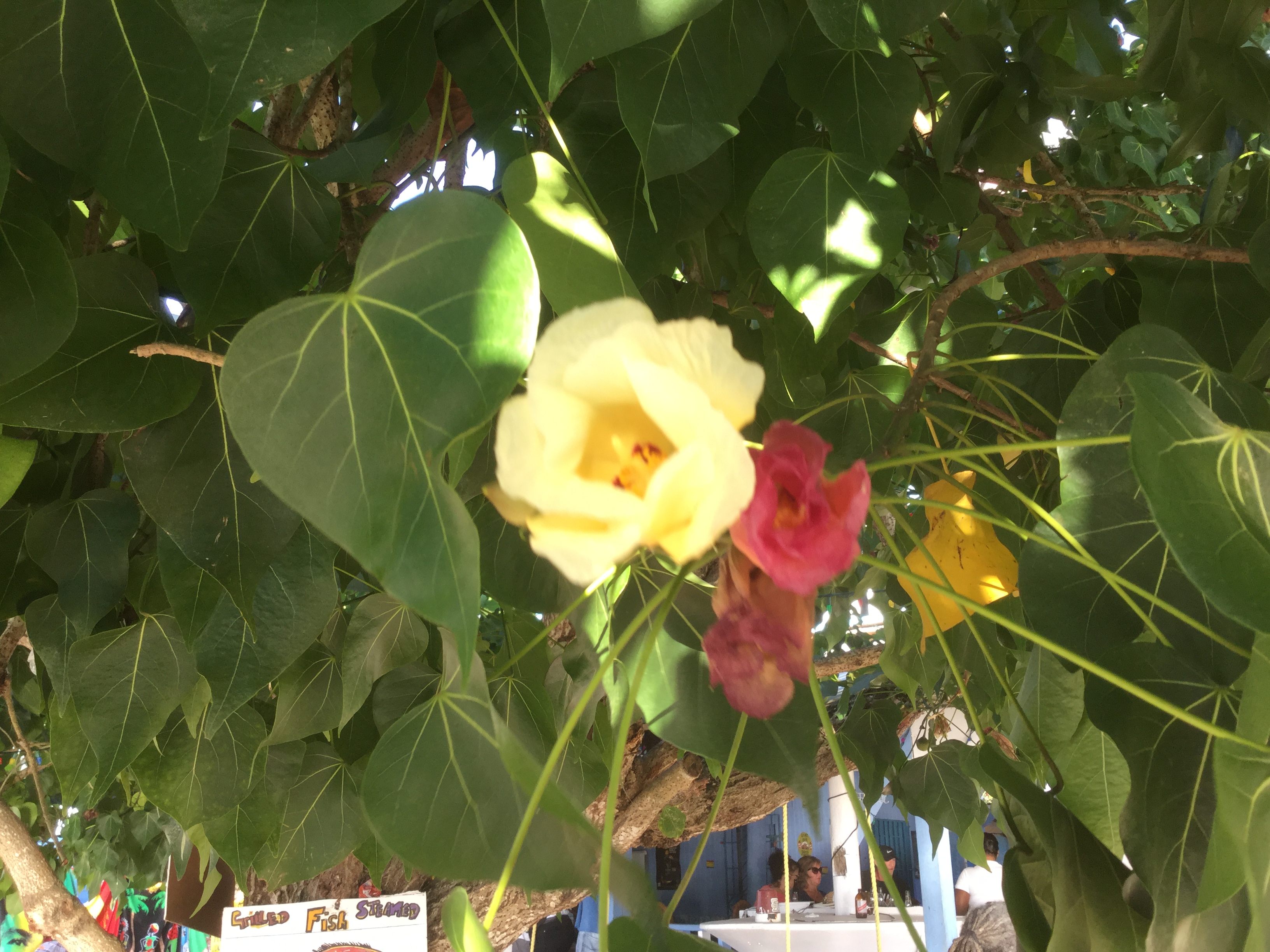 I was interested in this tree, (this one was at the Boat Bar, but I also saw it elsewhere). It has yellow flowers that change to red over a period of 3 or 4 days. Of the people I asked, no one could tell me its’ name.Attachment 53922