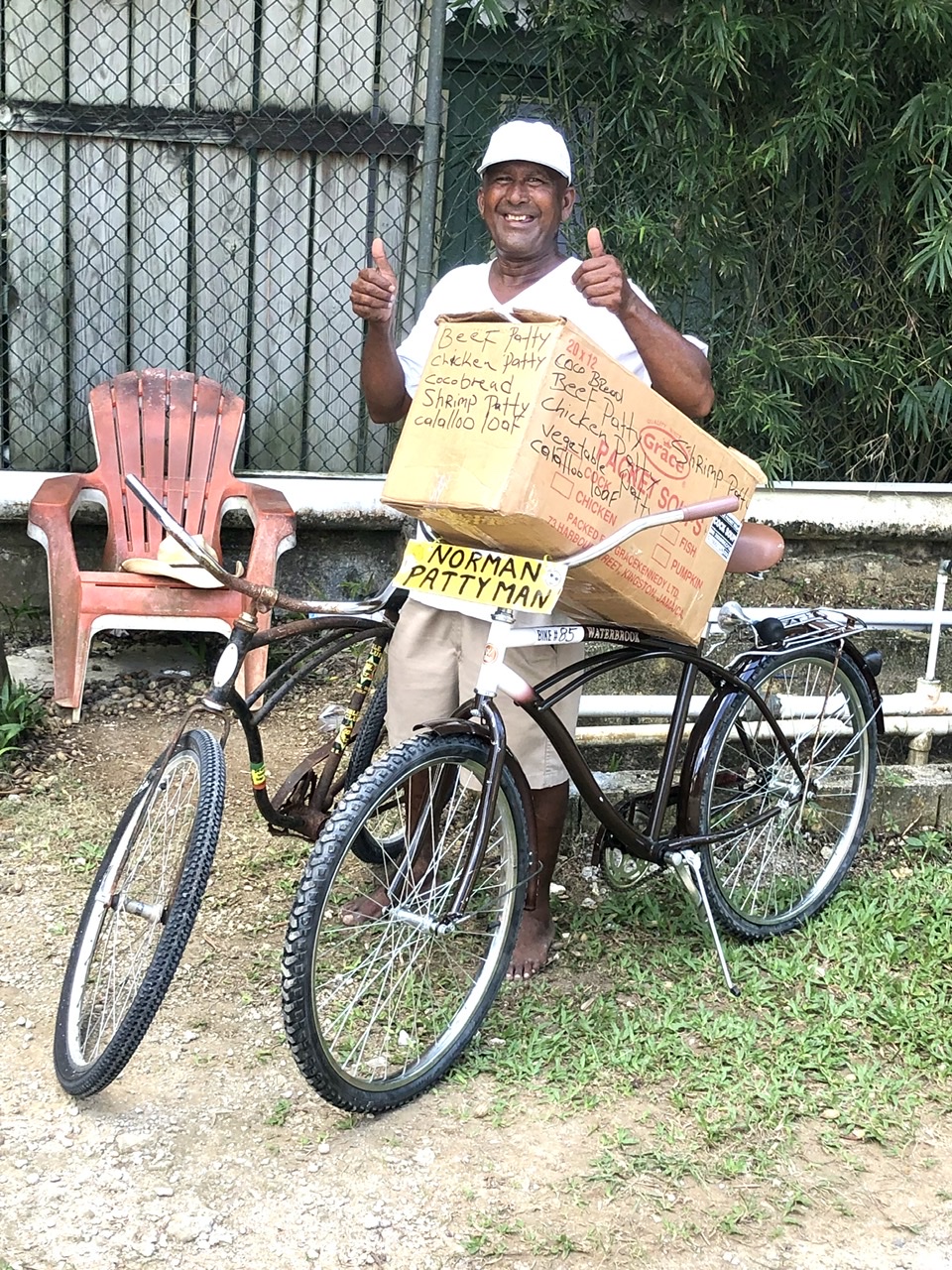 Negril icon Norman the patty man with his old bike and stylin’ new bike! Courtesy of the One Love Brigade.