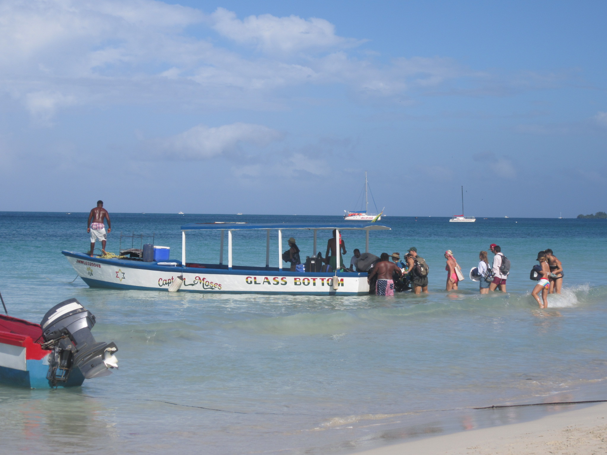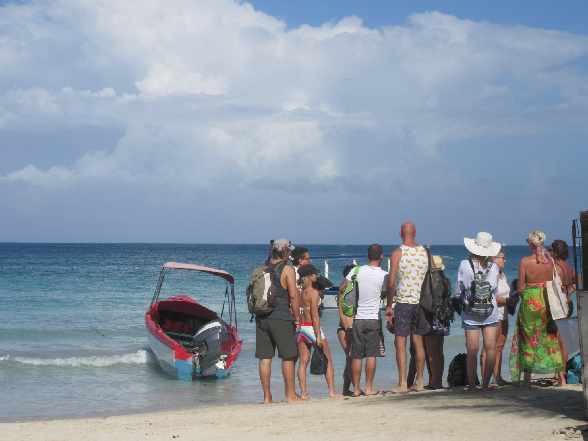 The crowd gathered for a BBQ on the island with Capt.Moses.