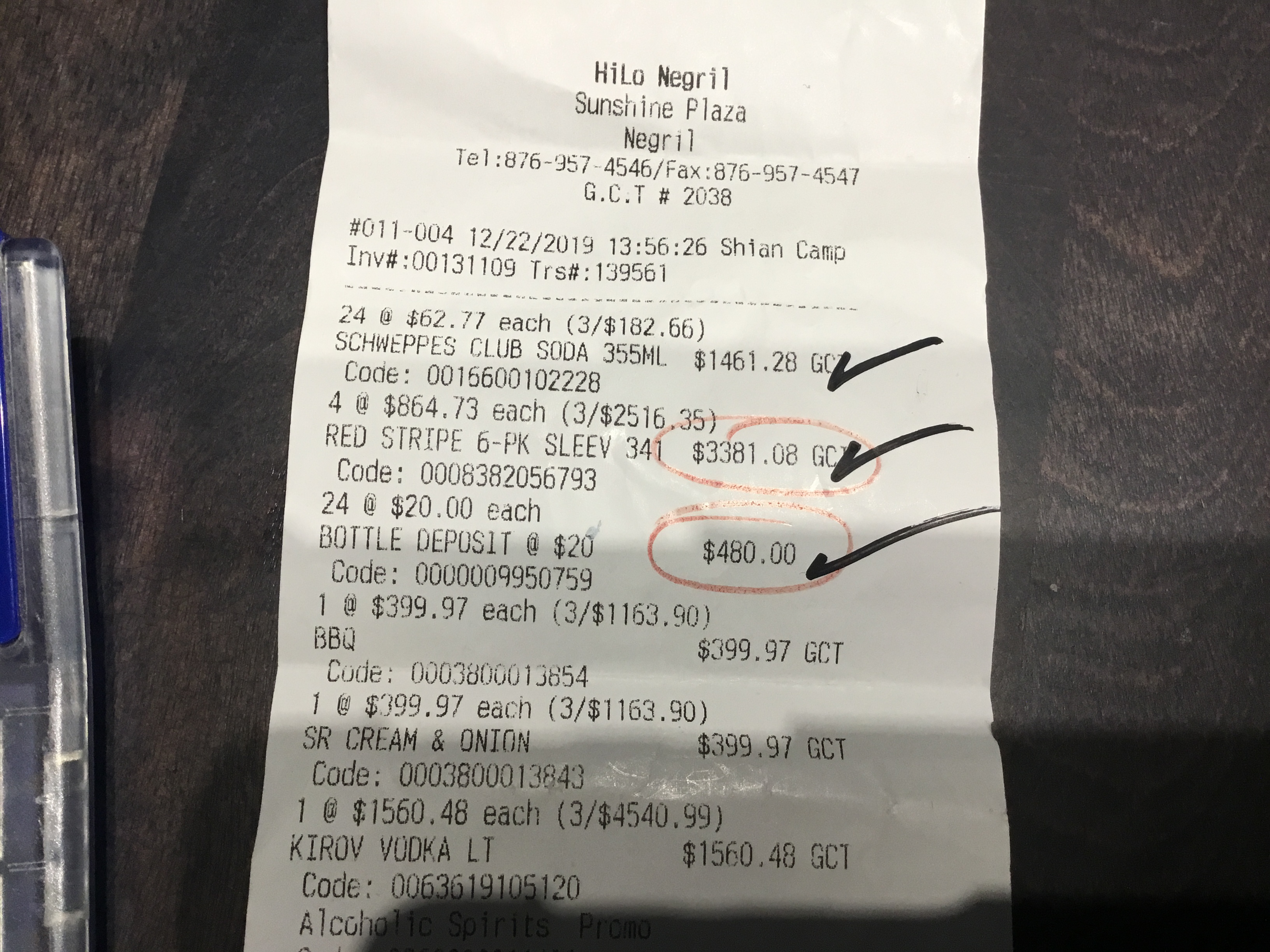 Also on the receipt is a litre of vodka . Hard to find a litre cheaper than that.