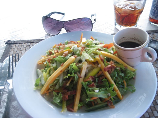 Travelers is my next “hang out spot”. So I chill and watch the day go by again. I go into my typical “trance” staring at the water. [~~I love in Jamaica how everyone speaks to each other…..Hello, Good Day, Alright, Bless – each one looks you in the eye and acknowledges your human presence.~~] I buy some CDs from beach vendor (Culture, Old School, Dennis Brown) for $300J and order a salad and Diet Pepsi with ice. Oh man this is the life…….. Soon handsome Mr. CD comes back with a love note for me (lol) and a hopeful look in his eye. Awwww it has his numba and say One Perfect Love, Blessup. Made me smile / gonna keep that note ….. and so it goes. The Patty Man went by and others selling things or making the beach walk. If you just sit down and relax everything you need will come by.