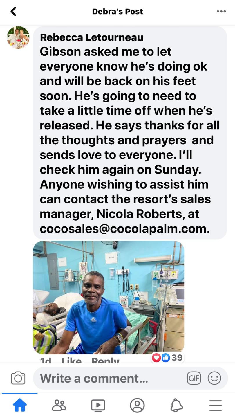 Mr. Gibson is doing much better and is now back at work. He still has further appointments and test to be done, but for now he seems to be doing well.