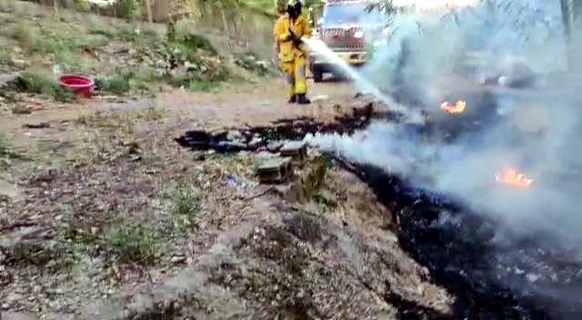Getting the far end, you can see the water spraying from behind the truck