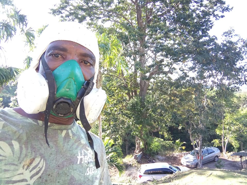 Linston ain't takin' no chances. I brought this mask to Zion Hill when we were using some strong chemical paint stripper