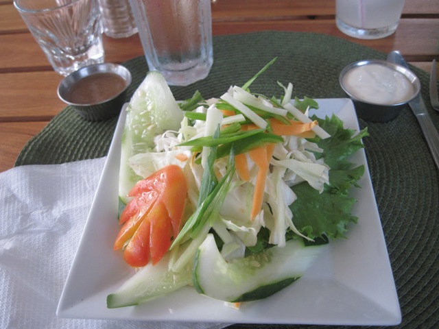 Didn't feel like cooking tonight and coming back from town didn't want to stop anywhere....jus wanted to get back to Westender so had dinner in the restaraunt again. It was WONDERFUL. Appetizer: Conch Cake w/Remolaude, Salad, Teriyaki Fry Chicken w/Rice and Peas and veg. Outstanding.