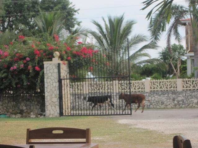 Belly full, peaceful feelin, sunset gorgeous, nice mellow music and then ...... here comes a herd of cattle runnin down the road past the gates - one stop and look at us and we all say GWAAN - like 15 cows man and no one tending them just runnin round. Laughed so hard......always exciting in Jamaica.