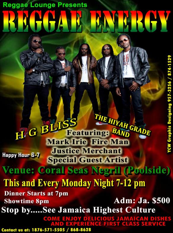 Just a quick note to let you know that RealNegril.com will be starting a new webcast event LIVE on Monday night from Coral Seas Garden - the Reggae Energy with the Hiyah Grade Band! Join us LIVE starting at 8pm until 10pm JA time! Hope to see you all there!
