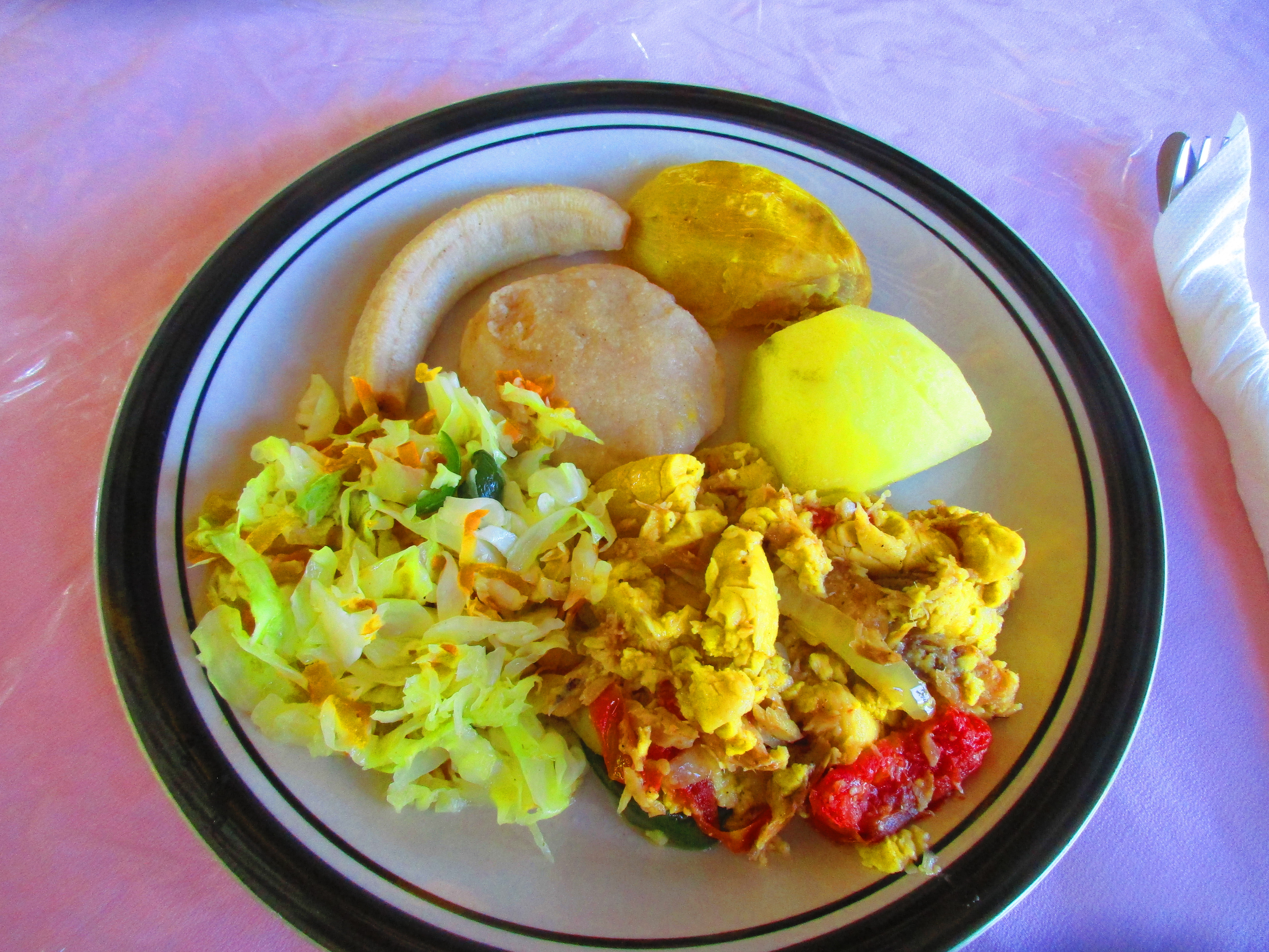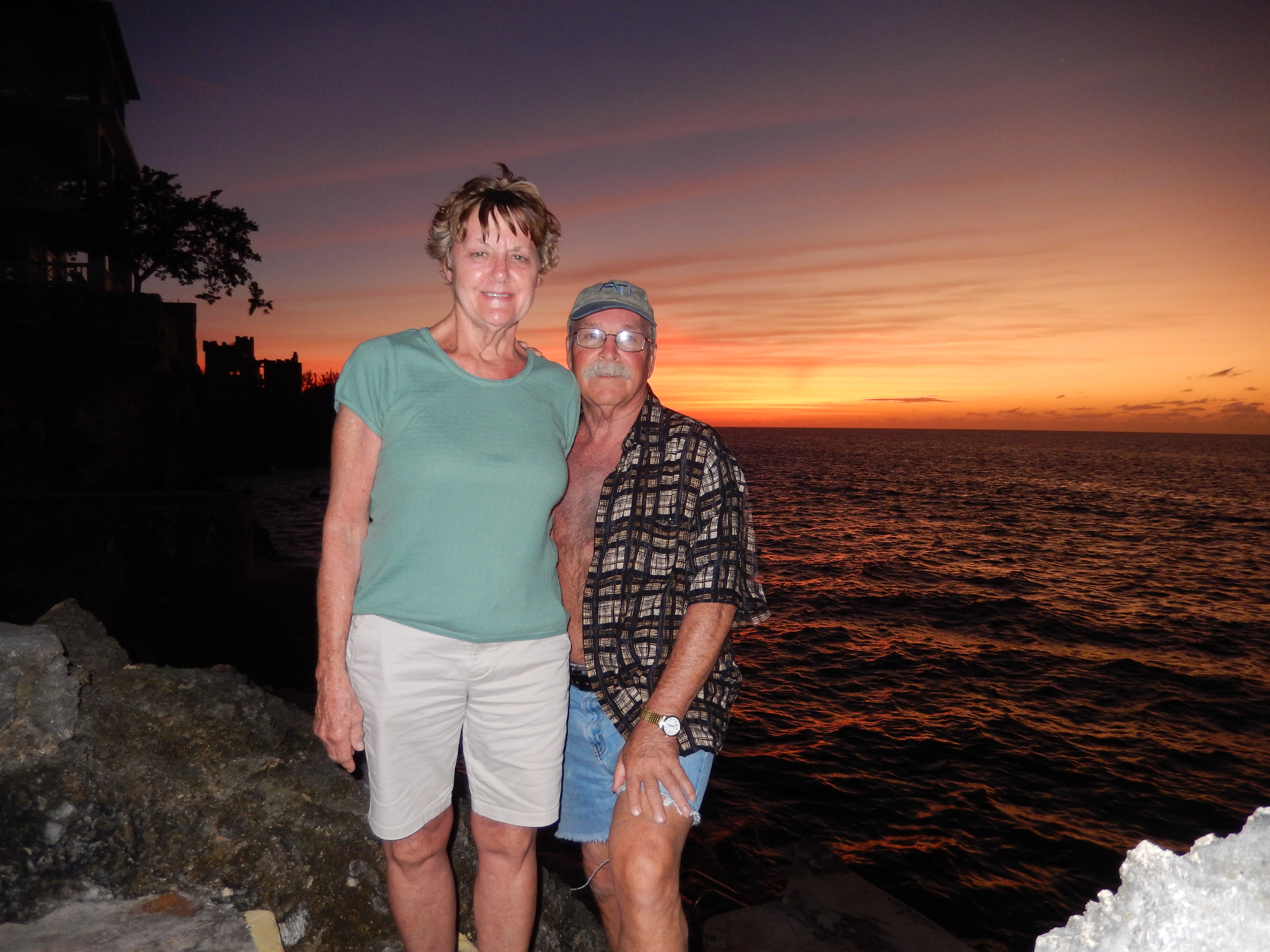 ...that we try not to miss a sunset. There is just something special about watching a sunset over water, which we can't do in our Pennsylvania home. Here is what we saw today. Also our Jamaican breakfast and dinner of pork chops and fried chicken.