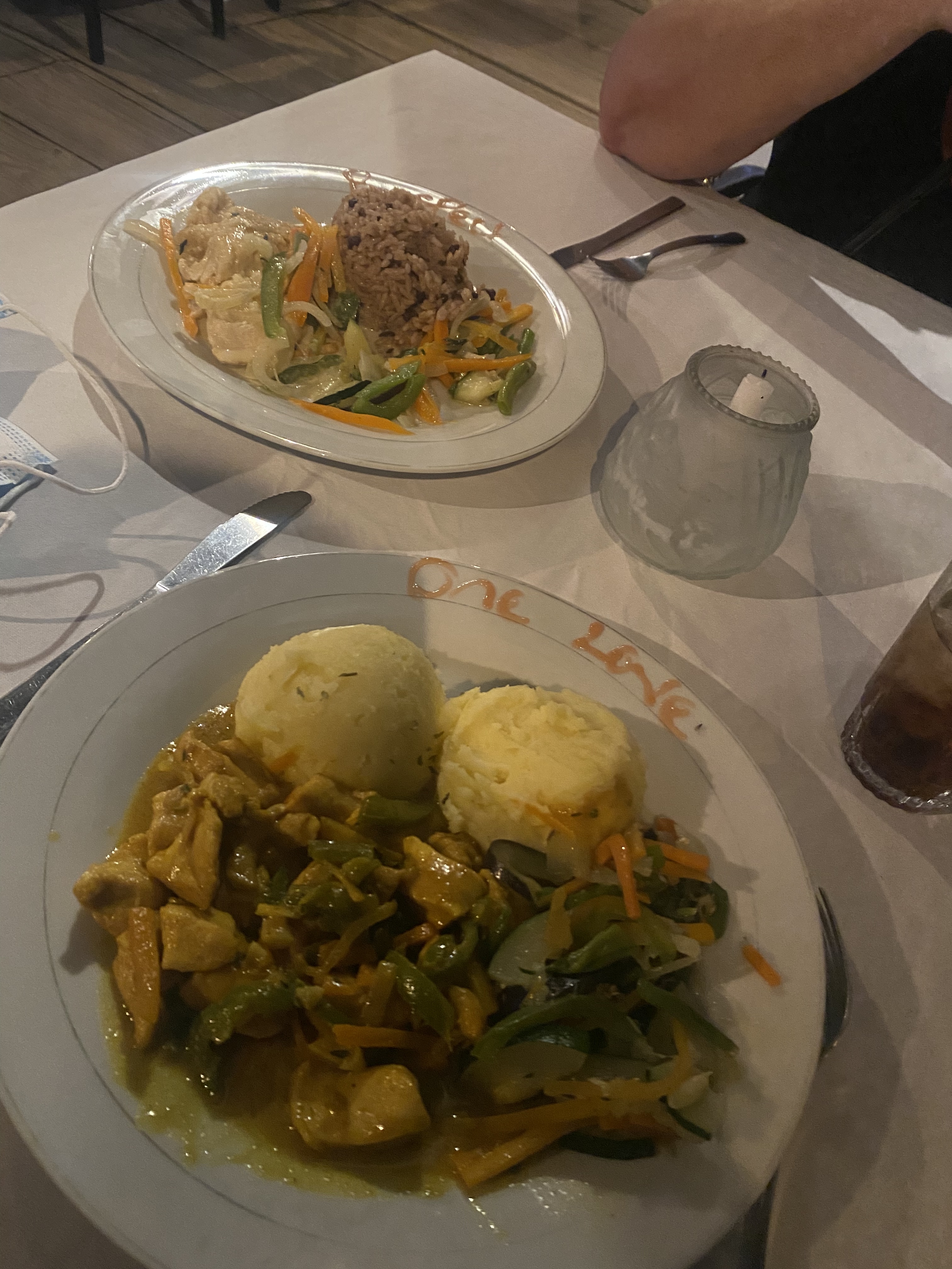 Days 2 and 3 sand gravity set in beach days. Breakfast day 2 at Coco and day 3 at Firefly. Both good choices. Lunch both days, Pattieās and coco bread from Norman on the beach. Dinner day 2 at Fiefly, my wife had coconut chicken and I had curried chicken both very good! Firefly may be my new beach go to. Dinner and sunset day 3 at 3 dives, my favorite meal in Negril always great.Attachment 56528Attachment 56529Attachment 56530