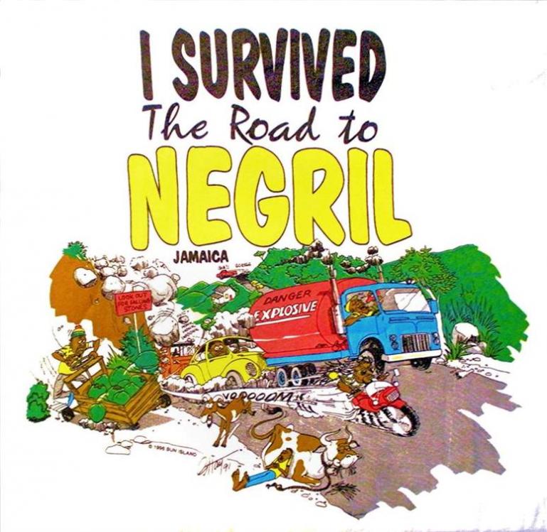 A few years ago a boardie had the Old Road to Negril t-shirts for sale.