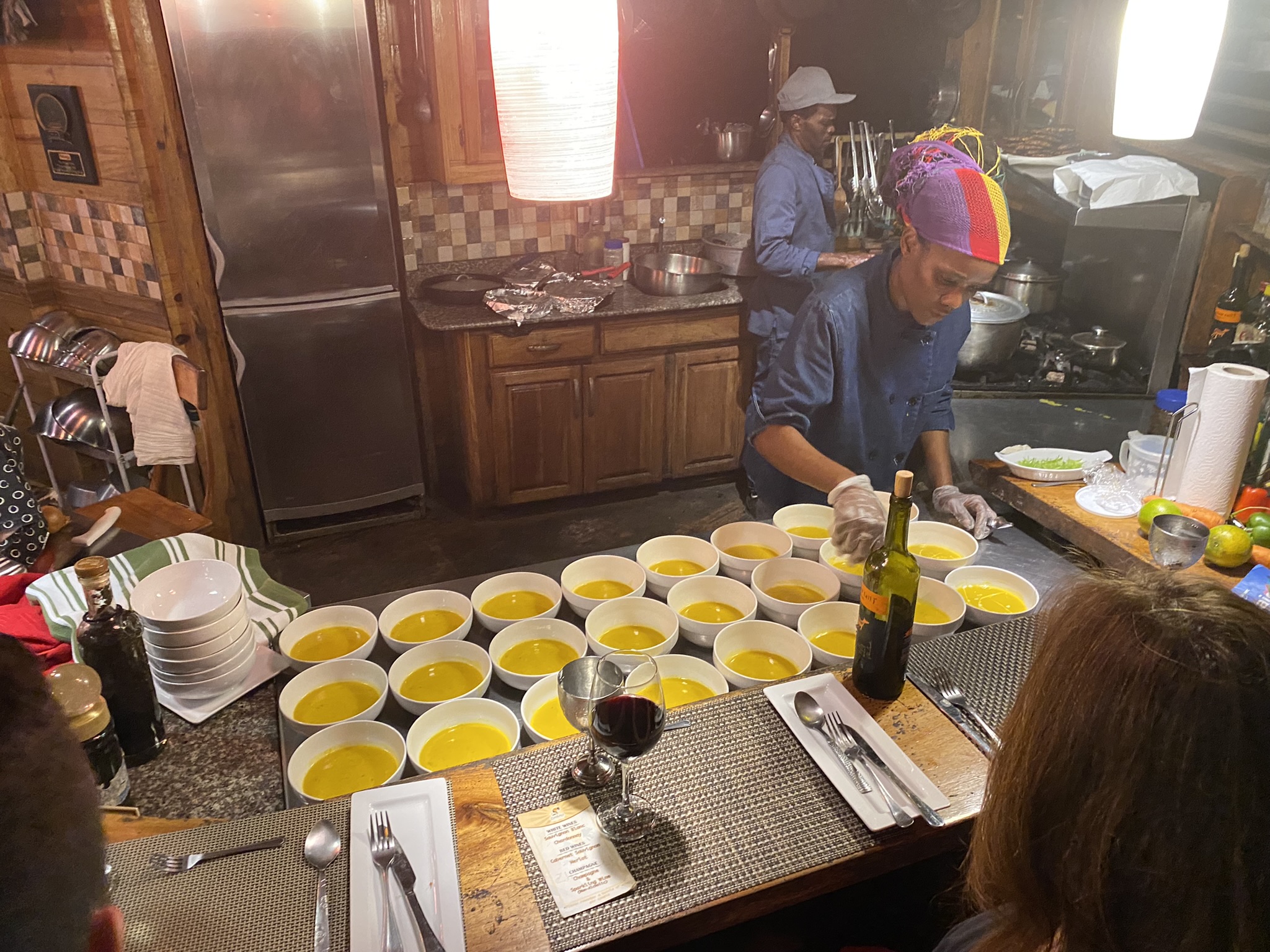 I highly recommend Zimbali. We visited for first time last year and are already booked for dinner next month. It’s a cooking demonstration not a cooking class. You watch them prepare the dishes in an open kitchen. The evening starts with a property/farm tour, wear comfy sneakers as it is up and down a couple of steep hills. The food was all very good. The meal also comes with a bottle of wine for each couple. They provide transportation for $20 pp.