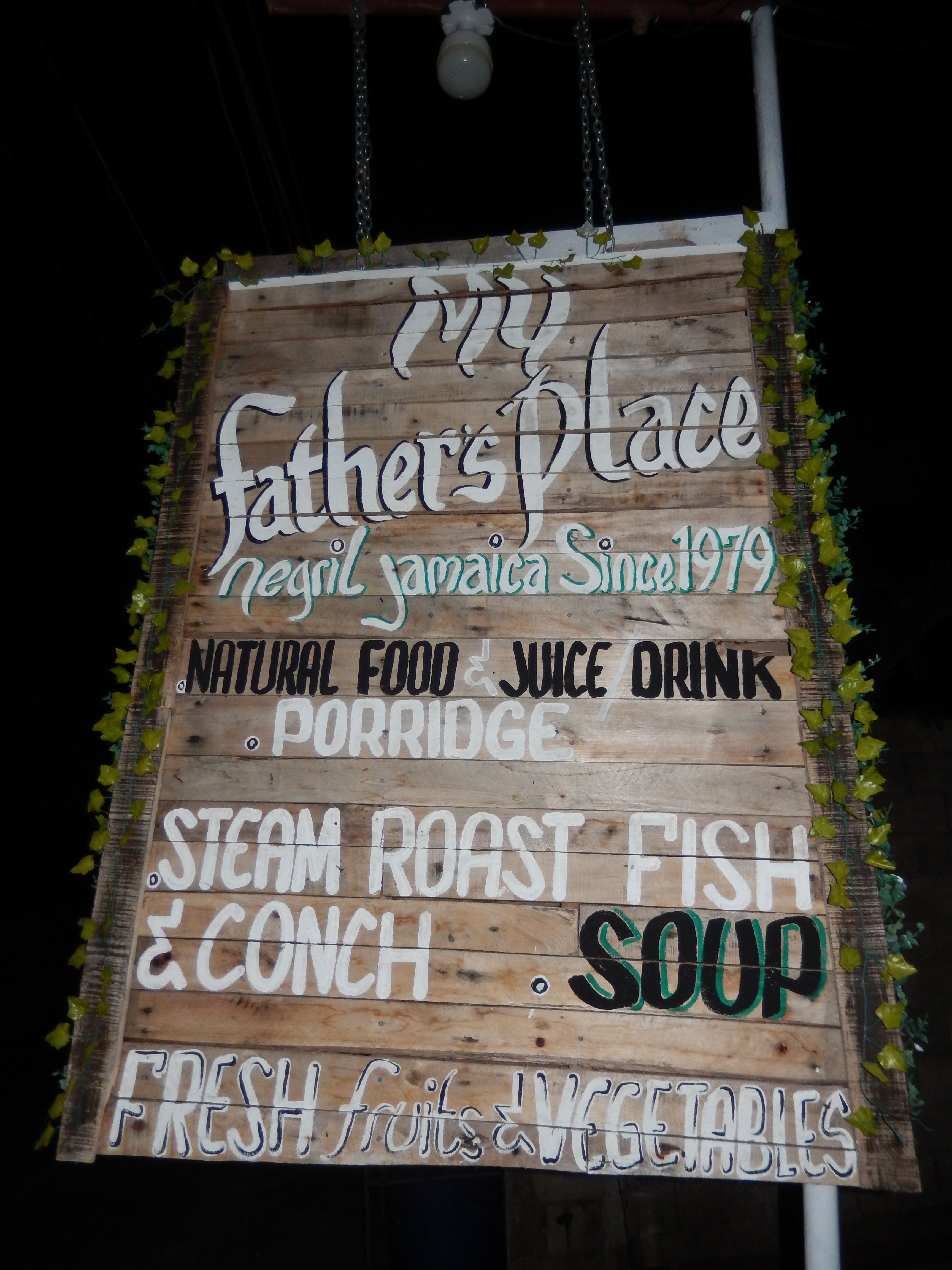 We pulled into Negril about 3:30 yesterday. Man, what a long day getting up early, getting to the airport, waiting for about an hour at immigration in MoGo and then the hour and a half drive to Negril. But the sunset was beautiful and we tried a new place for dinner on the west end called My Fathers Place just past L&M store near Blue Cave. A nice little place with a very limited menu at this time. The west end seems particularly void of tourists.