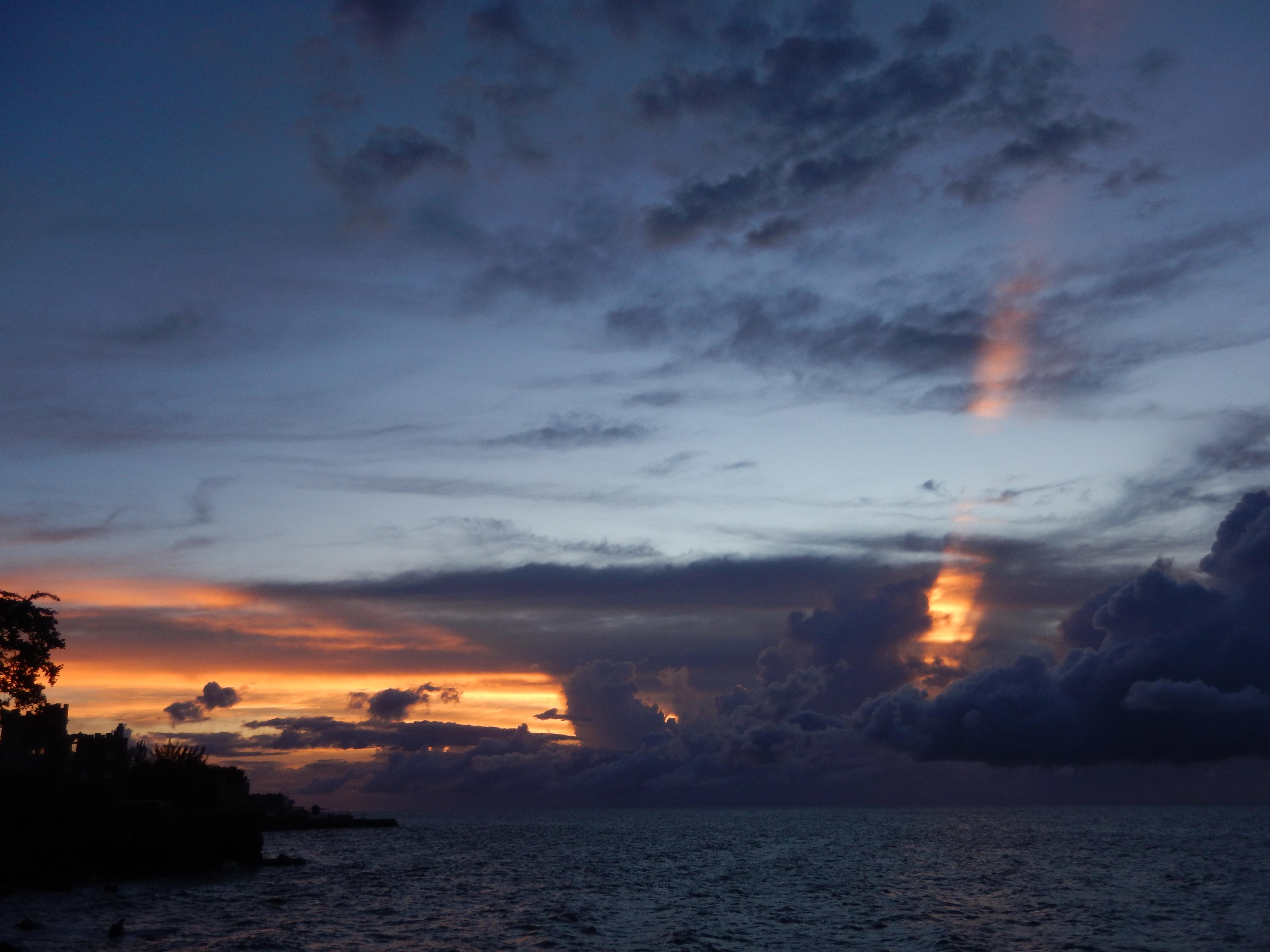 Spent some time in town today for breakfast at a little hole in the wall across from the fire company. Also purchased some fruit from the little market,went to the Digicel store to put some minutes on a phone and then walked to change some money. By 11 AM we had already walked nearly 4 miles and were soaked so we hopped in the pool for a cool down. The afternoon brought some wind and clouds and we thought sunset would be a bust. Walked to Pablo's for dinner.