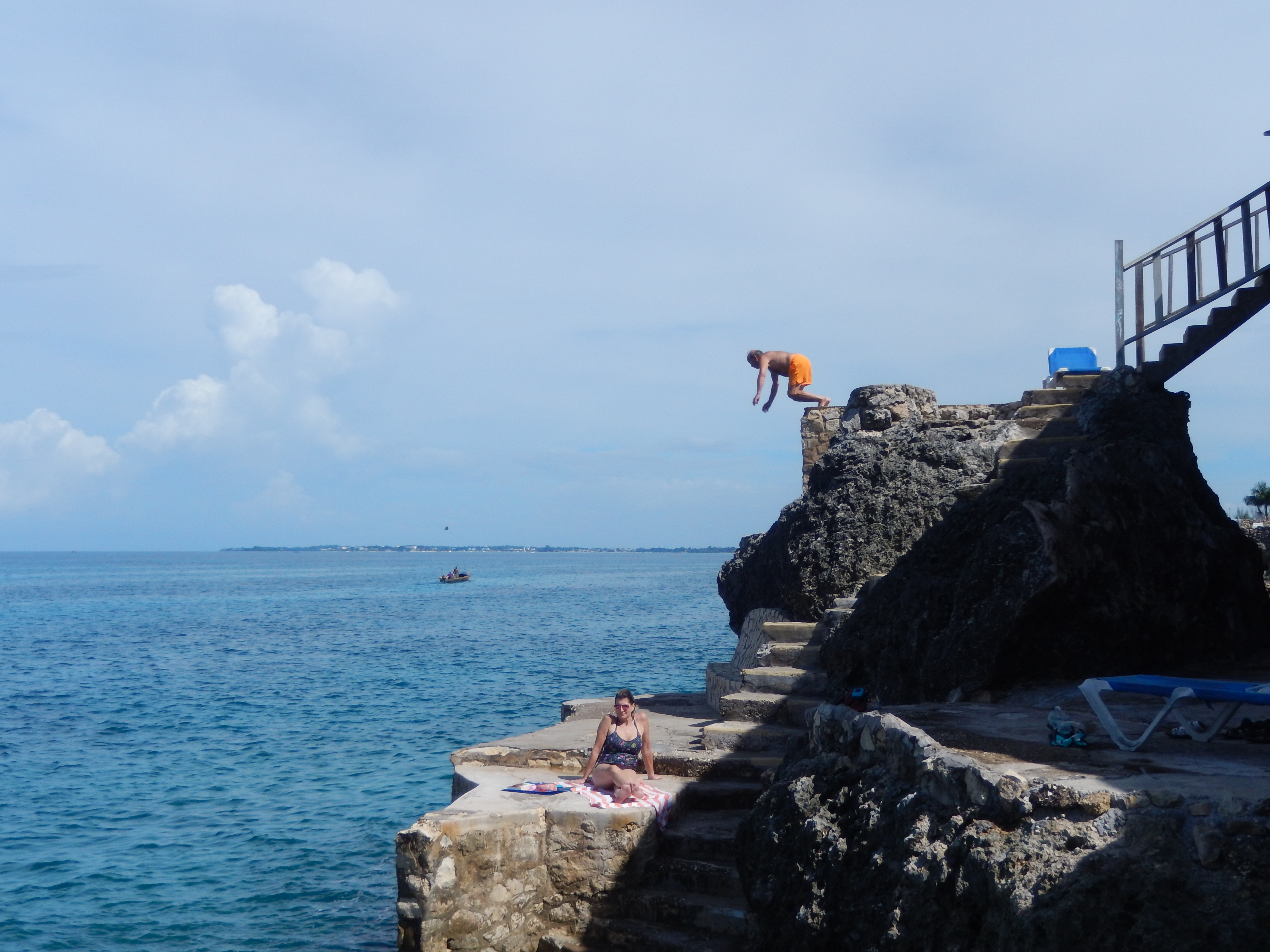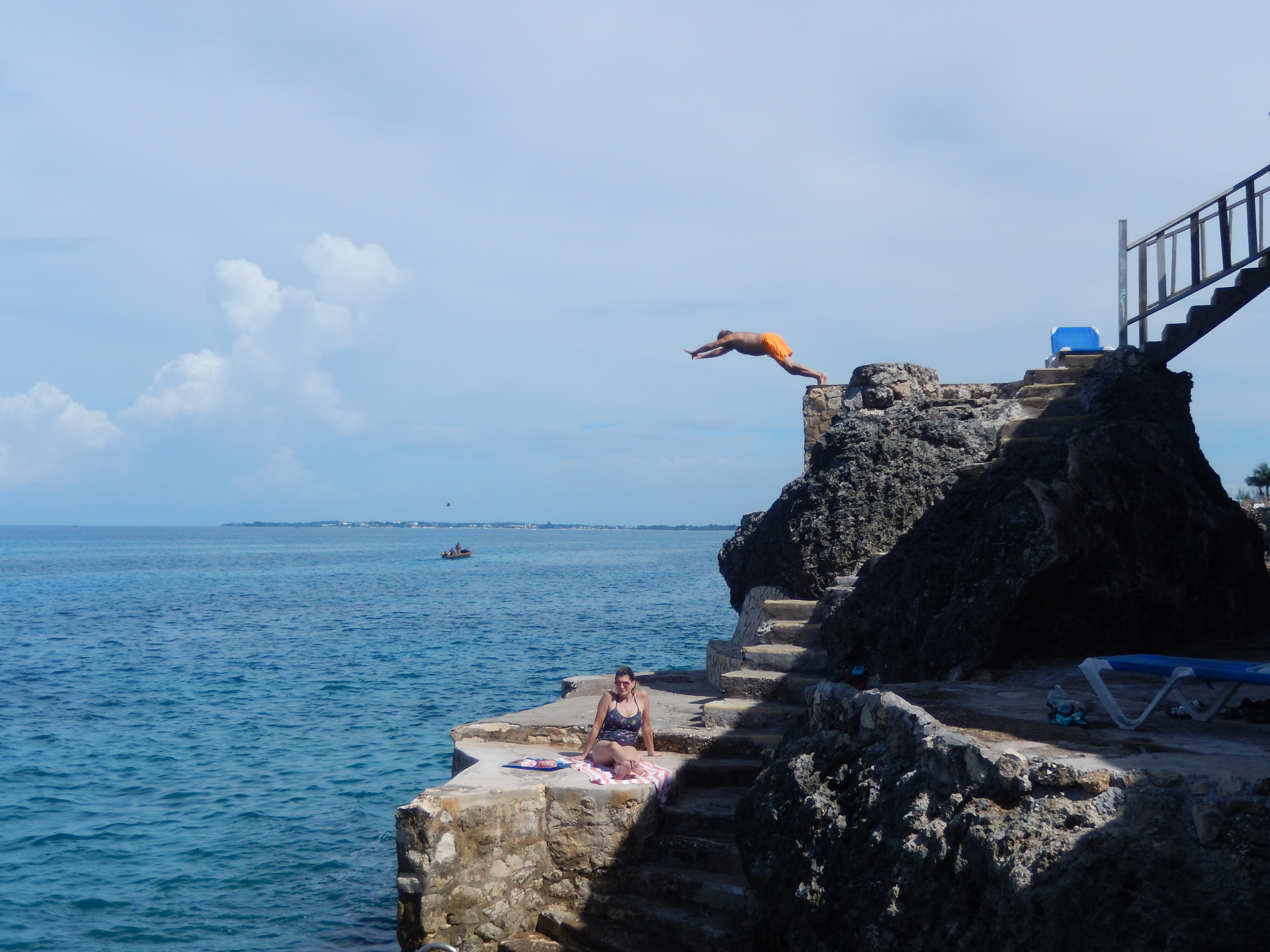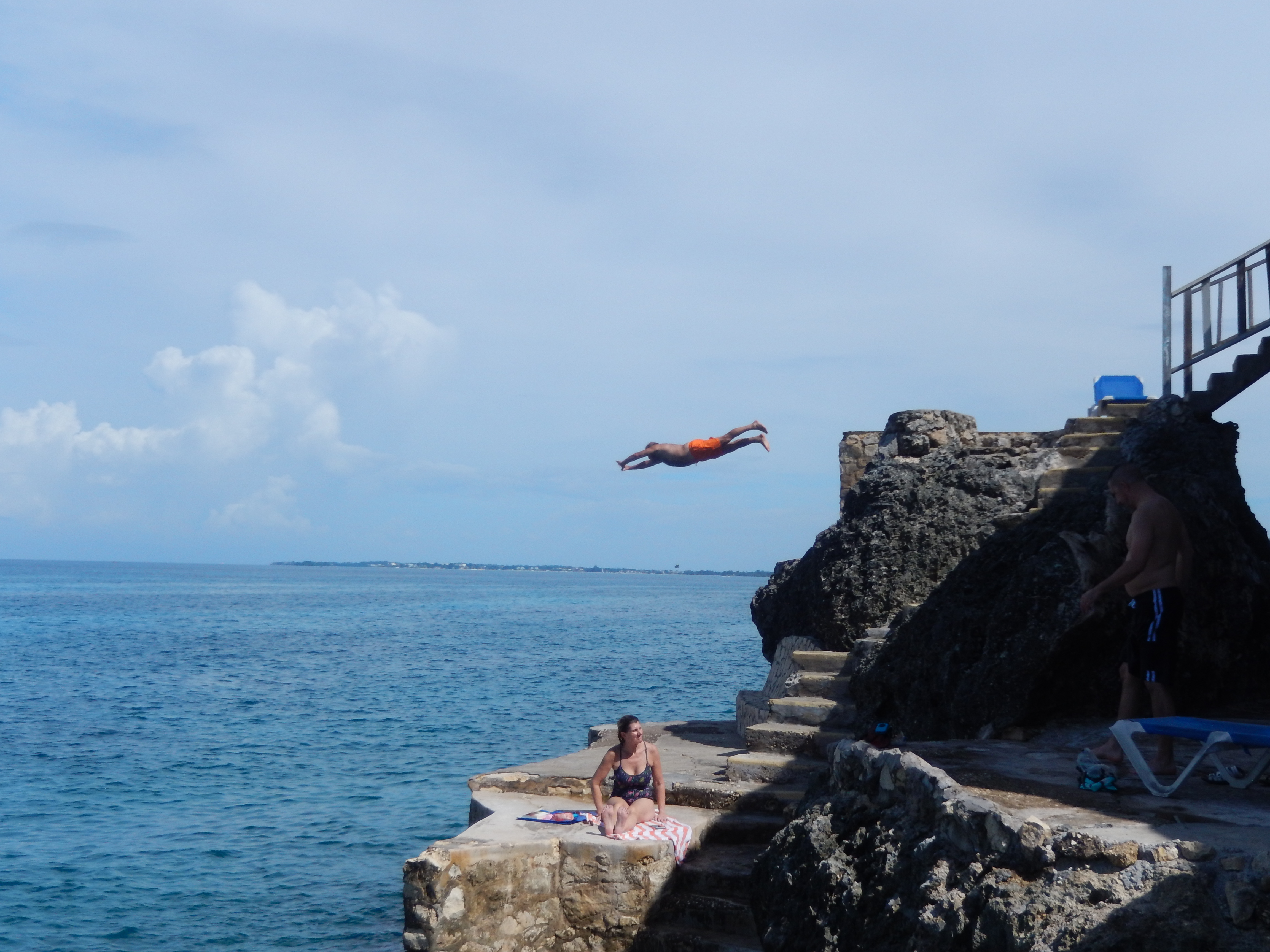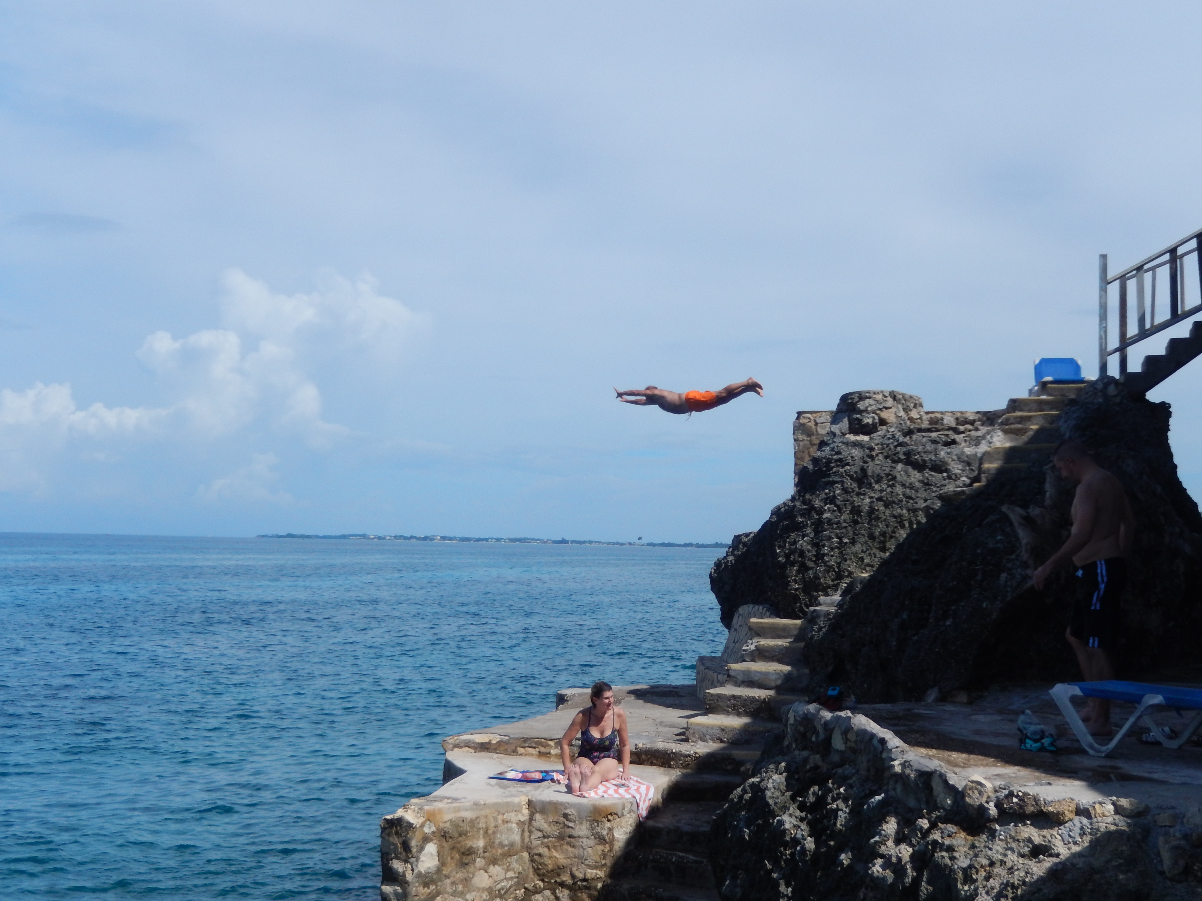 As the disclaimer in the video or ad will often say......”Don't try this at home”. I started cliff diving in upstate Pennsylvania at about 16 years old. It was a place that we would camp many weekends in our youth that we called Slumber Valley, but was known locally at Potts Falls or simply the Gorge. Meshoppen was just a little hick town and we got to know many of the locals that would frequent the gorge. At first it was just jumping from the 35' cliffs into was that was at least 20' deep. No one actually wanted to try to touch bottom as the water got cold and murky the farther down you went. At that age I wasn't too bad on a diving board despite having never taken lessons. Back in those days many of the local pools had 3 meter boards, about 10' high. So I started doing swan dives from the gorge. As time went on I needed a bigger thrill and started attempting one and a half flips and eventually full gainers. We would also jump at night sometimes which was really crazy not knowing when you would hit the water. Over the years I would look for other places to dive and found some good spots in Mexico and the west end of Jamaica. As I got older I stepped it down a bit and no longer do any “tricks”. At the local pool I can still do a one and a half and a gainer on the one meter board. In fact Rick's is way too high for me now. So I limit myself to about 20' or so and the wife isn't even happy about that. She is the one that gets the photos and she knowd that if she doesn't get a good shot I'll only do it again. I have had my Nikon Coolpix s9600 for a number of years but had forgotten about the “sports” mode. It takes 3 or 4 photos in rapid succession. So....still diving at age 72.