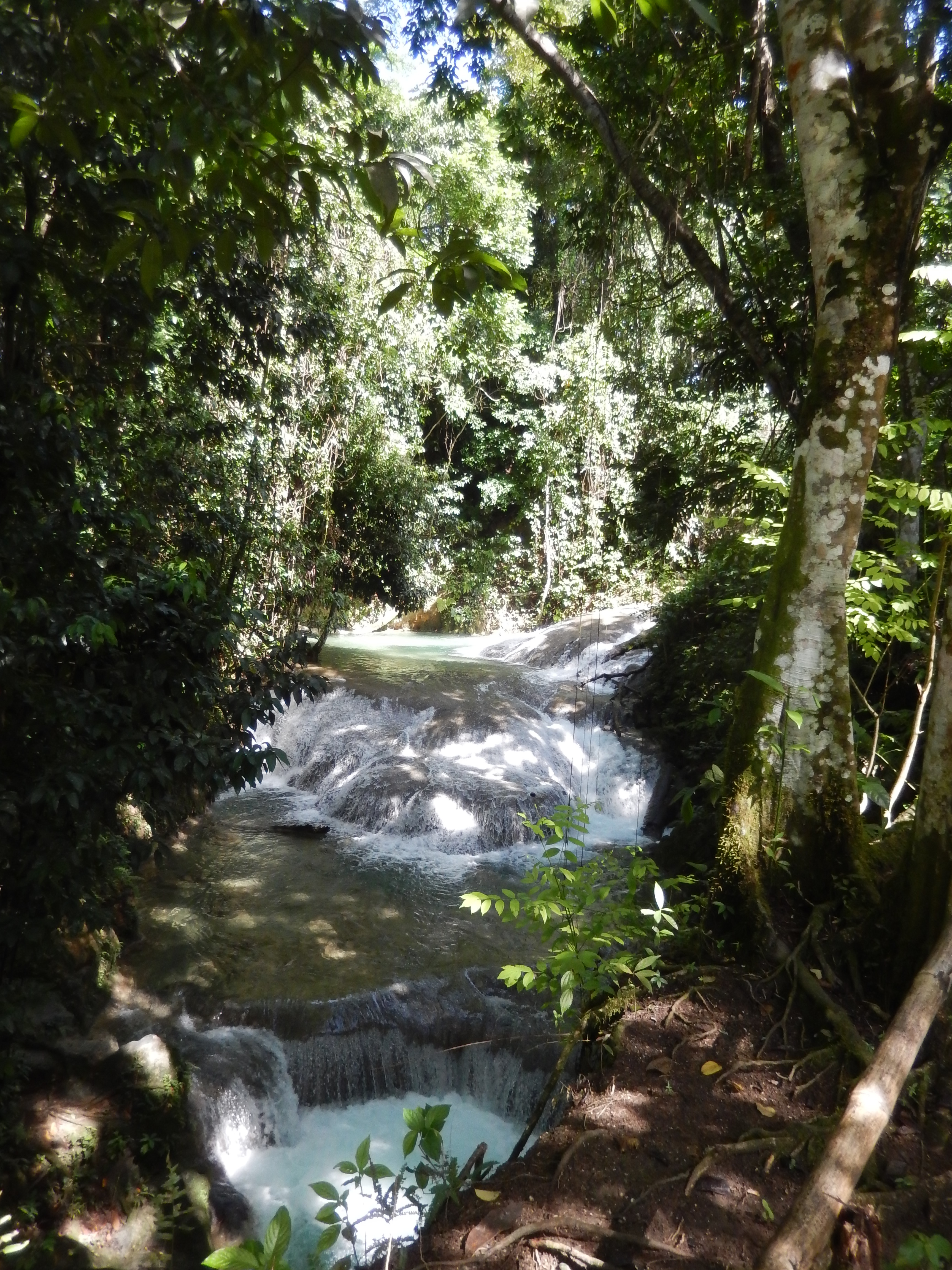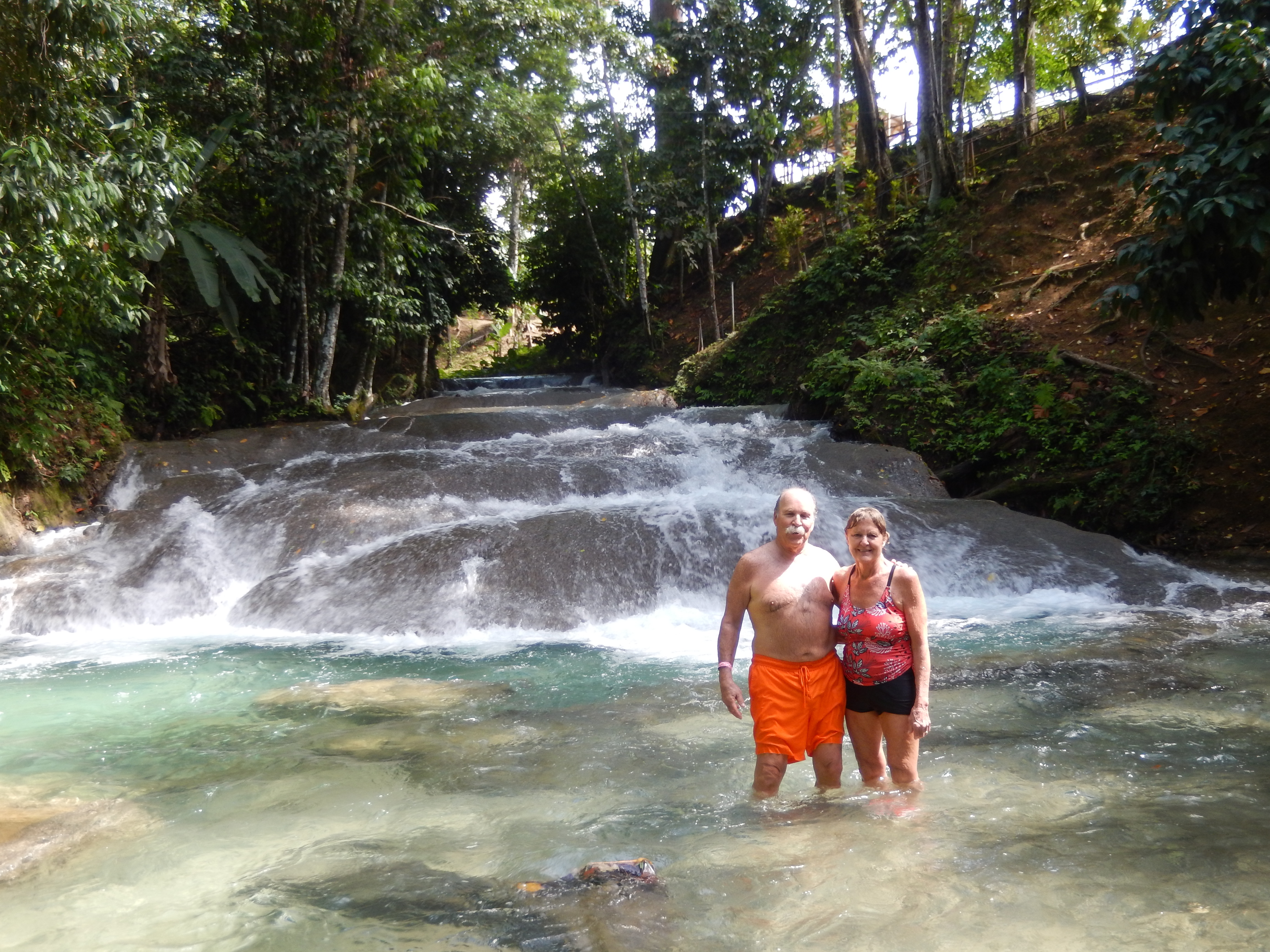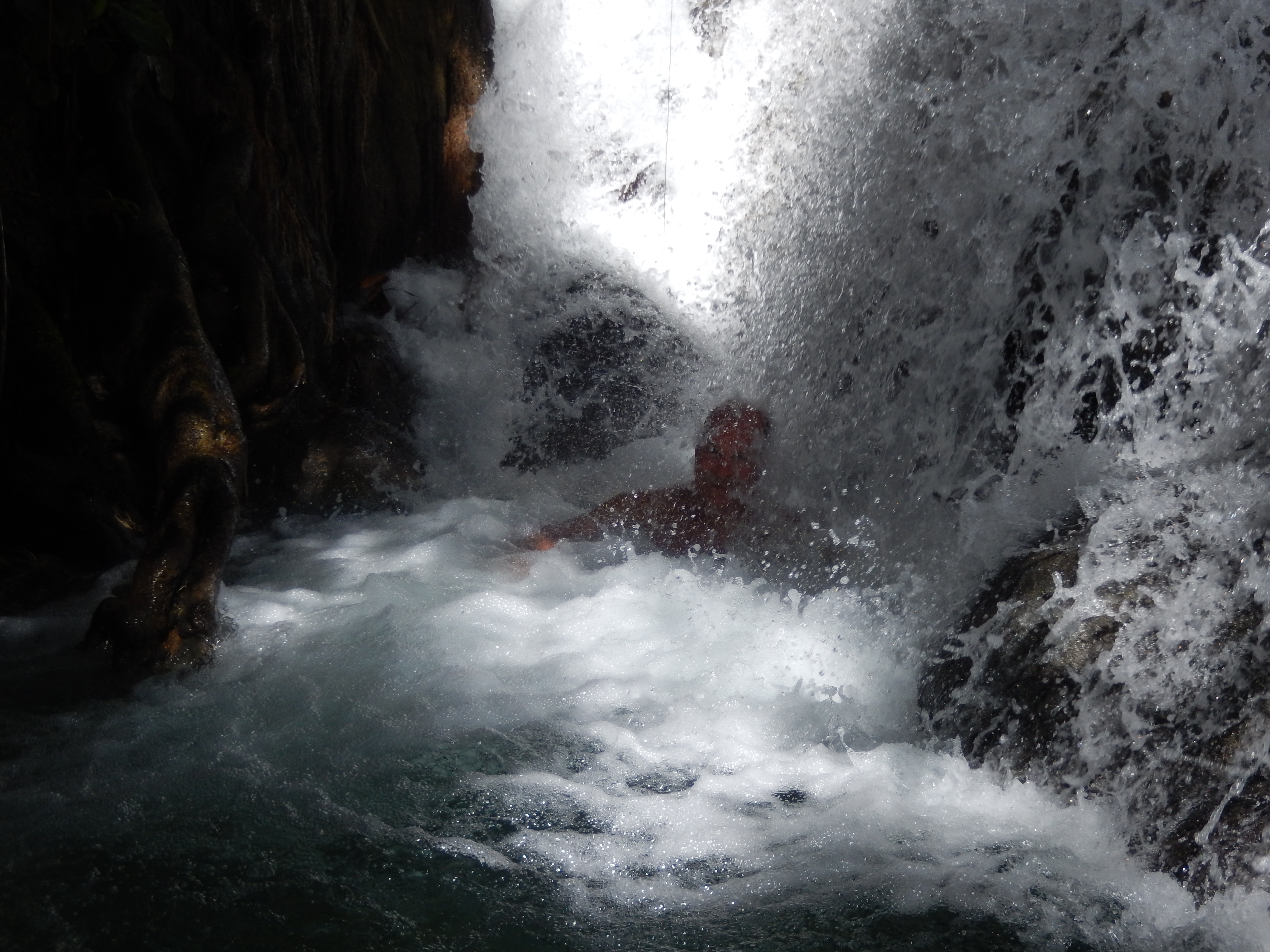 Over the years Janet and I have been to most attractions on the west end of the Island. Some of them don't exist any longer and many we have been to multiple times. But this was the first time going to Benta Falls. We contacted our driver and he said it was best to plan an entire day for the adventure. In fact he was bringing his swimming trunks too. Although I had been told that it was close to Sav, that didn't seem to be the case. It is quite a drive in the country to get there especially if you are taking it at a leisurely pace to enjoy the surroundings. We arrived by 10:30 and went to the changing\bathroom area to slip on our trunks. We took to the falls what we thought was best and locked the rest in our drivers car. You get a tour guide to take you through the falls, much like Mayfield Falls. The entrance to the Benta Falls complex is at the top, so you walk down a long path to get to the streams entrance. Not knowing quite what to expect, I had on my hat and glasses. Mistake number one, you will loose them! I also had a nice Nikon point and shoot camera and also a waterproof camera. Mistake number two, don't take a good camera unless you have someone who will carry it and take photos for you. Fortunately our driver not only wanted to get in the water, but he was way more sure footed than me and actually like taking the photos for us. And the waterproof camera I took.....it slipped off my wrist at the third small falls and was gone. Mistake number 3, be careful even it is wrapped around your wrist. Our guide was very cautious for us especially my wife helping her navigate the many pitfalls in the stream. I just followed in their footsteps. We got up to the rope swing and of course I had to take a try. At least I didn't make mistake number four, but it was close. When the guide tells you to “let go” you better or you will end up smashing into the tree. A little farther up is a small falls that you can get behind. Very cool, but it is not a big falls you are under. Eventually you get to the end and climb the stairs which takes you to the entrance area. We ordered lunch and I was surprised that not only was it very good, but it wasn't even expensive. After a leisurely lunch we changed and headed back to Negril. Total trip including driving about 6 hours. Our guide was from the west end of Negril and I asked him how he got to work. His reply was “3 route taxi's and lots of time “. So it is possible to do this trip on your own, but it could make for a long day.