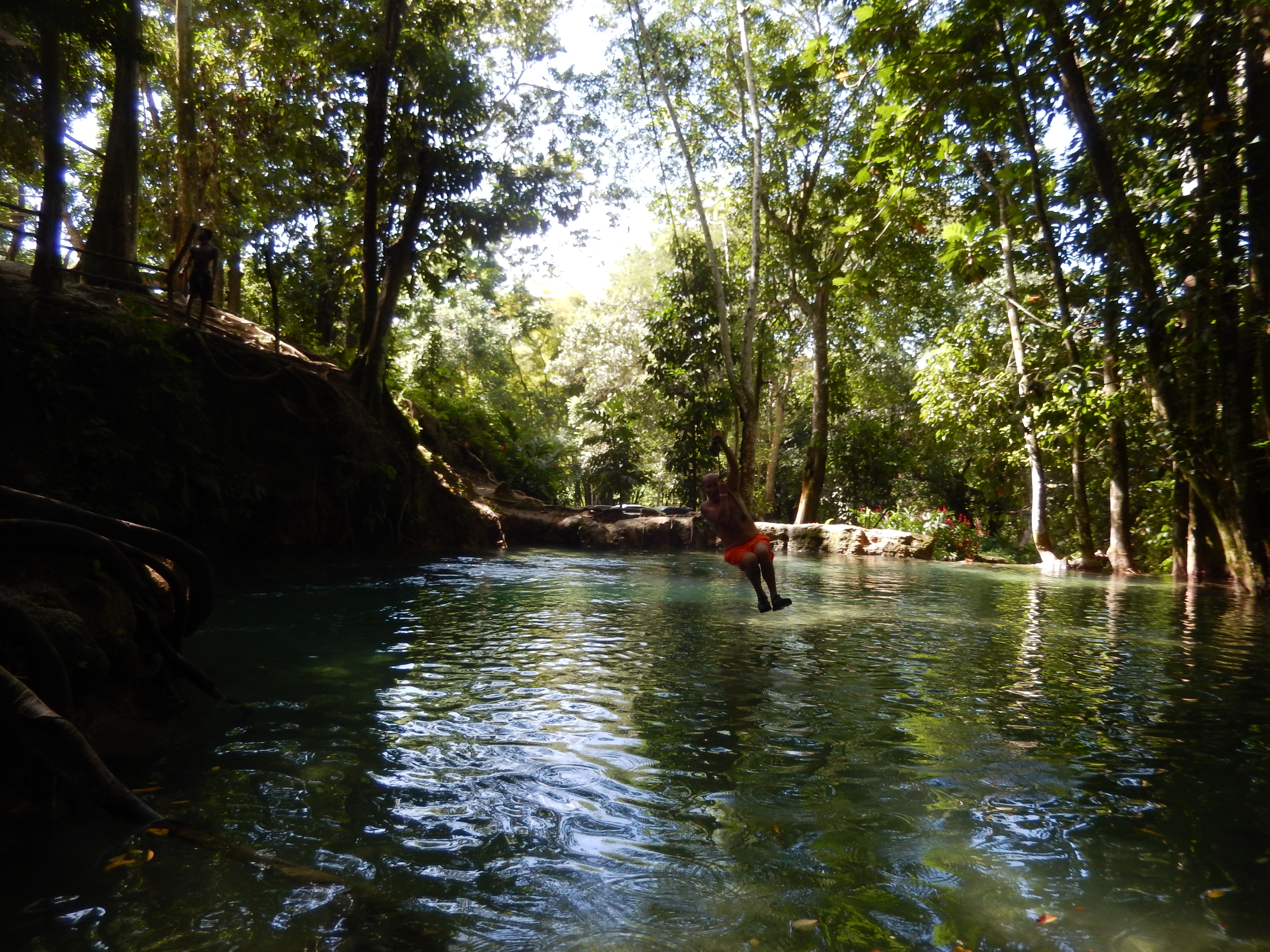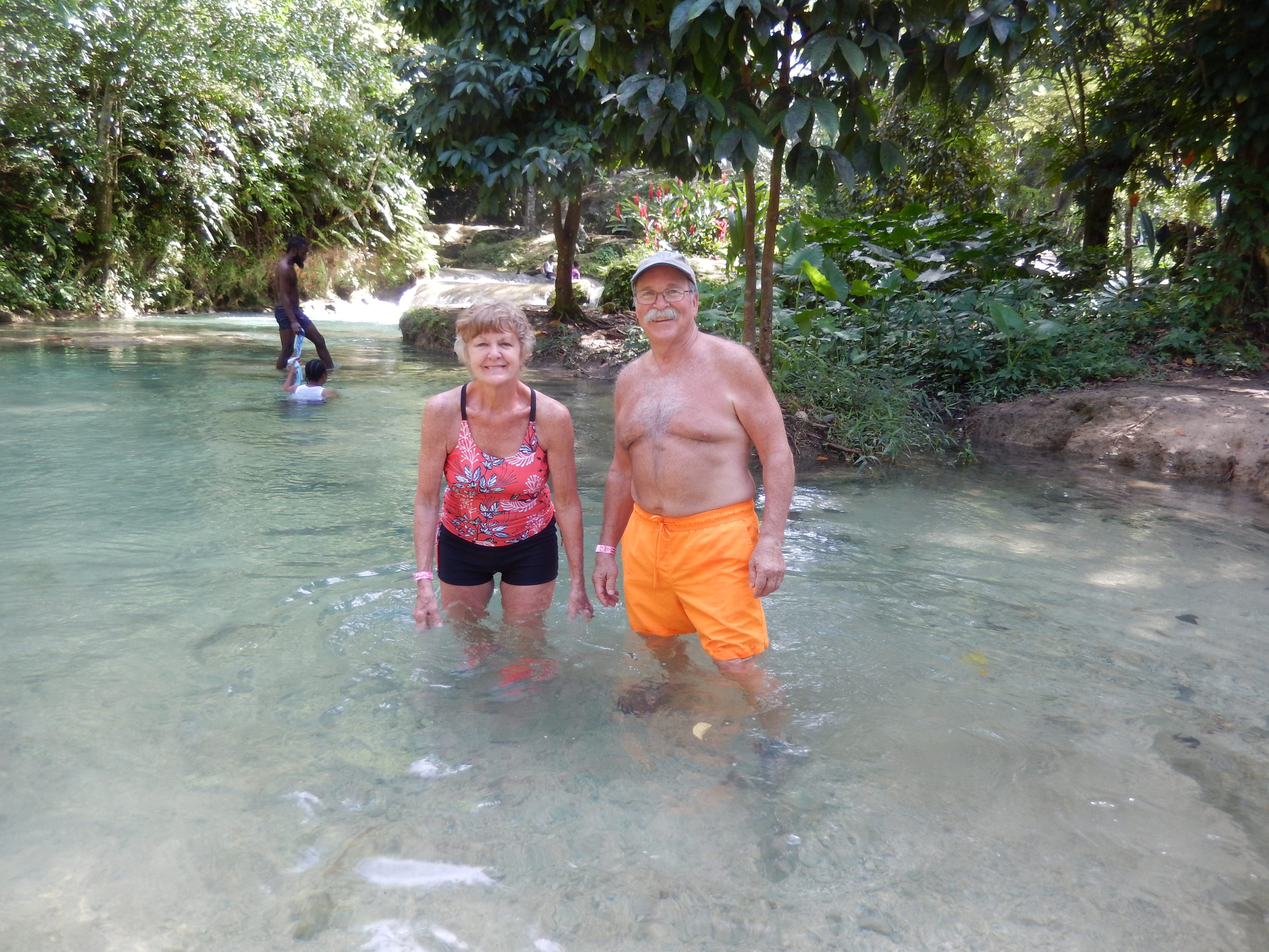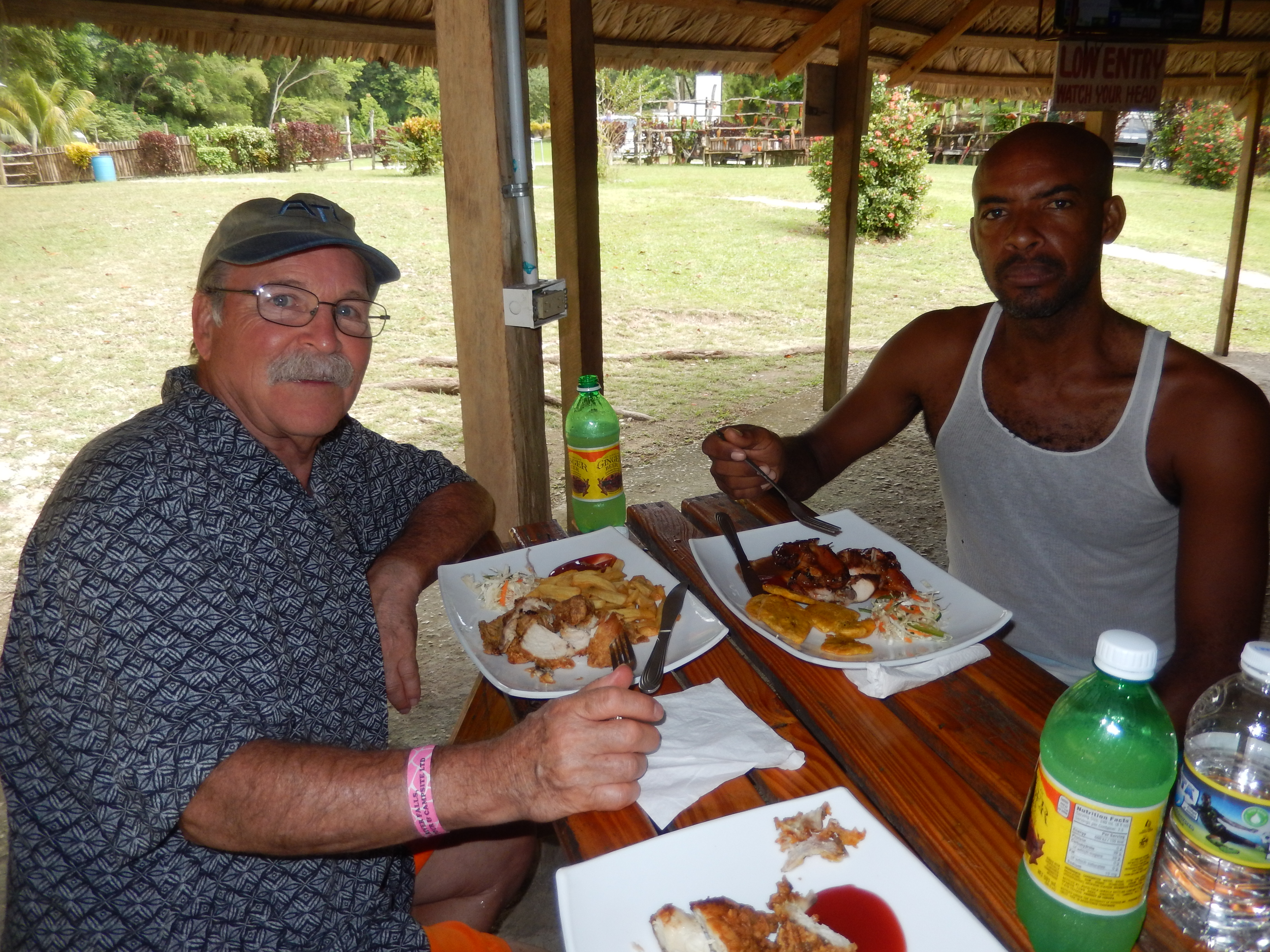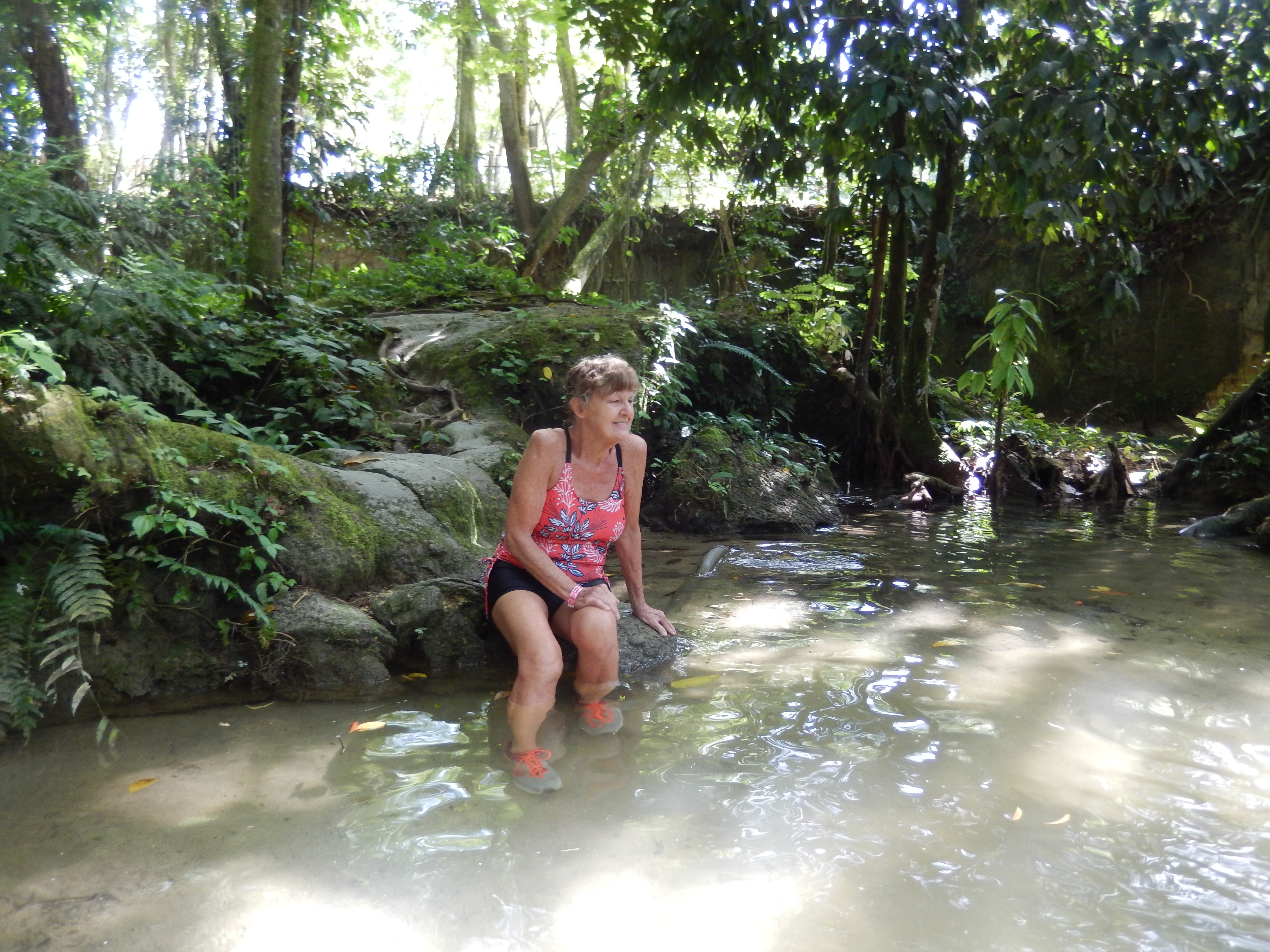 Over the years Janet and I have been to most attractions on the west end of the Island. Some of them don't exist any longer and many we have been to multiple times. But this was the first time going to Benta Falls. We contacted our driver and he said it was best to plan an entire day for the adventure. In fact he was bringing his swimming trunks too. Although I had been told that it was close to Sav, that didn't seem to be the case. It is quite a drive in the country to get there especially if you are taking it at a leisurely pace to enjoy the surroundings. We arrived by 10:30 and went to the changing\bathroom area to slip on our trunks. We took to the falls what we thought was best and locked the rest in our drivers car. You get a tour guide to take you through the falls, much like Mayfield Falls. The entrance to the Benta Falls complex is at the top, so you walk down a long path to get to the streams entrance. Not knowing quite what to expect, I had on my hat and glasses. Mistake number one, you will loose them! I also had a nice Nikon point and shoot camera and also a waterproof camera. Mistake number two, don't take a good camera unless you have someone who will carry it and take photos for you. Fortunately our driver not only wanted to get in the water, but he was way more sure footed than me and actually like taking the photos for us. And the waterproof camera I took.....it slipped off my wrist at the third small falls and was gone. Mistake number 3, be careful even it is wrapped around your wrist. Our guide was very cautious for us especially my wife helping her navigate the many pitfalls in the stream. I just followed in their footsteps. We got up to the rope swing and of course I had to take a try. At least I didn't make mistake number four, but it was close. When the guide tells you to “let go” you better or you will end up smashing into the tree. A little farther up is a small falls that you can get behind. Very cool, but it is not a big falls you are under. Eventually you get to the end and climb the stairs which takes you to the entrance area. We ordered lunch and I was surprised that not only was it very good, but it wasn't even expensive. After a leisurely lunch we changed and headed back to Negril. Total trip including driving about 6 hours. Our guide was from the west end of Negril and I asked him how he got to work. His reply was “3 route taxi's and lots of time “. So it is possible to do this trip on your own, but it could make for a long day.
