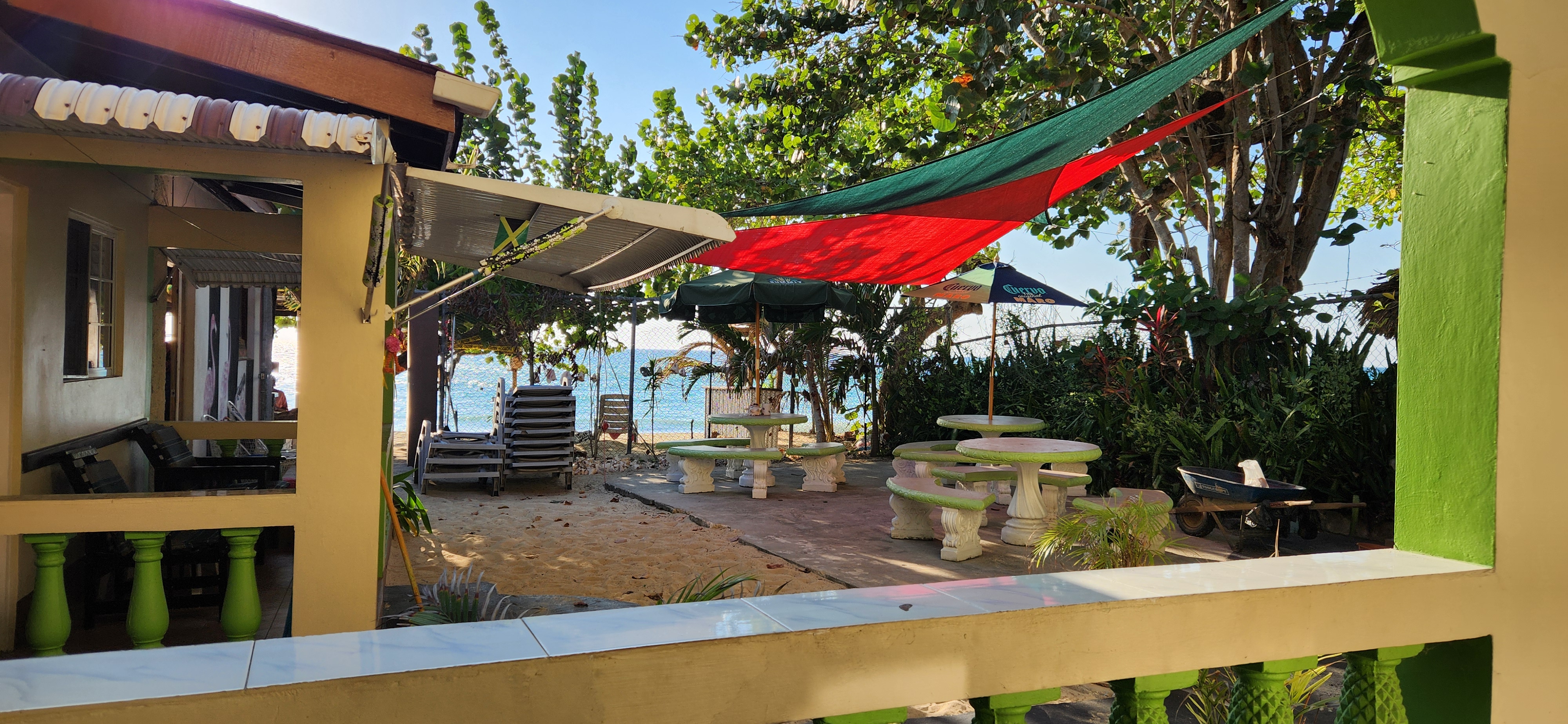 Well my woman, Corey, decided to head to Boston to watch her grand daughters a few weeks while her kids went shark diving off of Mexico ( f%cking crazy if you ask me) so I took this opportunity for another reach. Always looking for something different, I decided to try out Caribbean Delight. The trip down was pretty smooth out of Buffalo thru Philly and I thought the airport was going to be rough at first because they were stopping all the tourists in the hallway before immigration but it was just to hand out c5 forms (obviously, this is their solution for people that didn't get the memo about doing it online). Once past there, the kiosks and facial recognition station worked like clock work and I arrived at the luggage belt just as my suitcase was coming down the belt! Got picked up by the boys from Luxurios Carib and with a quick stop at the megamart, and miraculously, no line at the Lucea Scotia bank, I was on my way to Negril. When I arrived I had to hunt down Detta, the owner, but she, and Tiny, got me set up in my room over looking the ocean in no time. Being the OCD freak I am, I had to unpack first but there was still plenty of time to throw on my trunks, grab a stripe at the bar and take a much needed dunk in the ocean to let the travel stress just release.