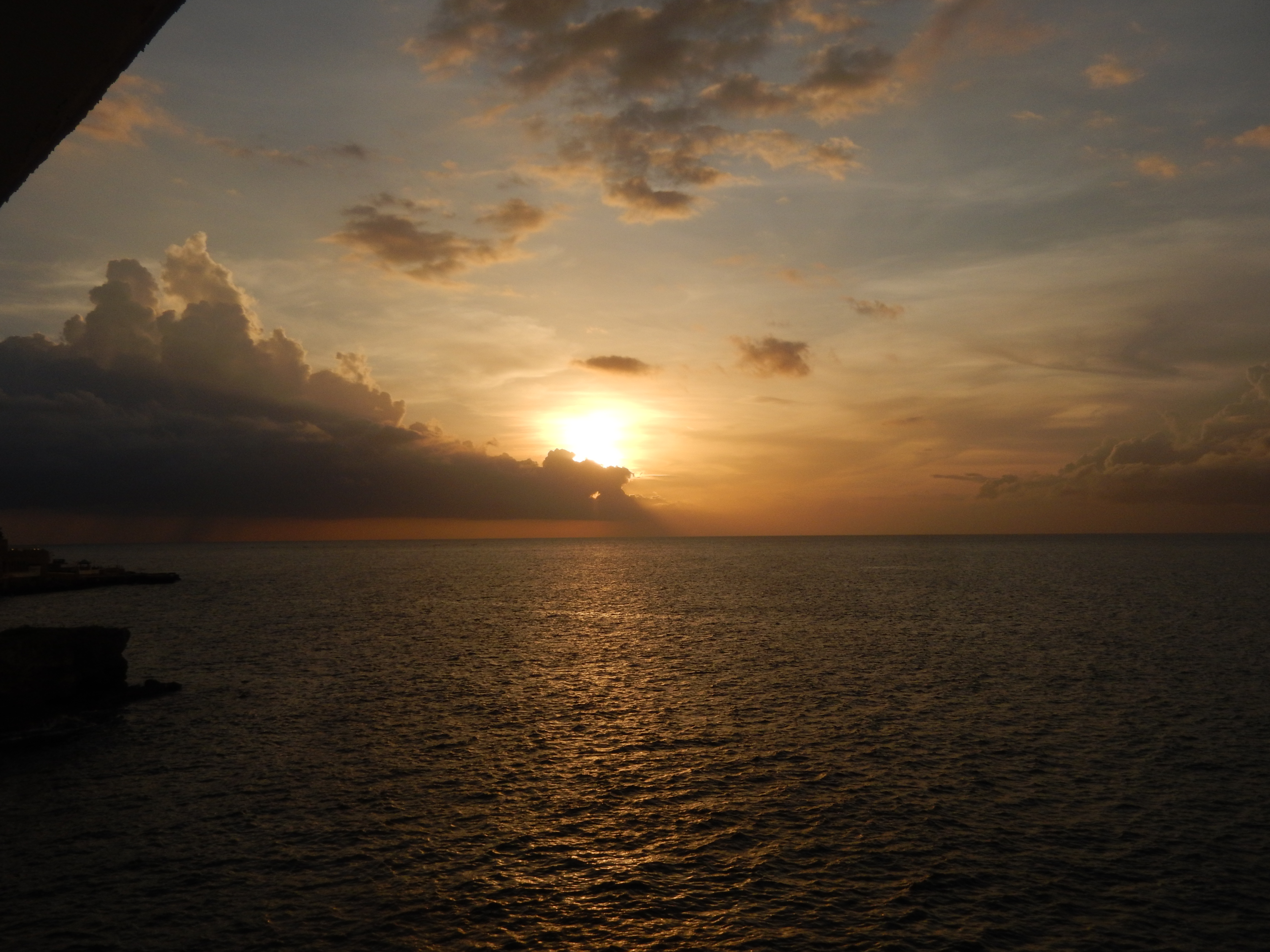 We arrived Tuesday from Philly on American Airlines which left on time and arrived early in MBJ. Immigration was a snap as we filled out our C-5 online and customs was a breeze. Michael was there on time for our pickup and we made it through Lucea before the traffic got bad. We saw a nice sunset then headed to Pablo's for our first meal. Janet and I each got brown stew chicken and each had a June plum drink. There was some heavy rain just as we were headed back to our hotel and we waited it out on a porch with a couple of locals. The light show was amazing as we sat on our patio.
