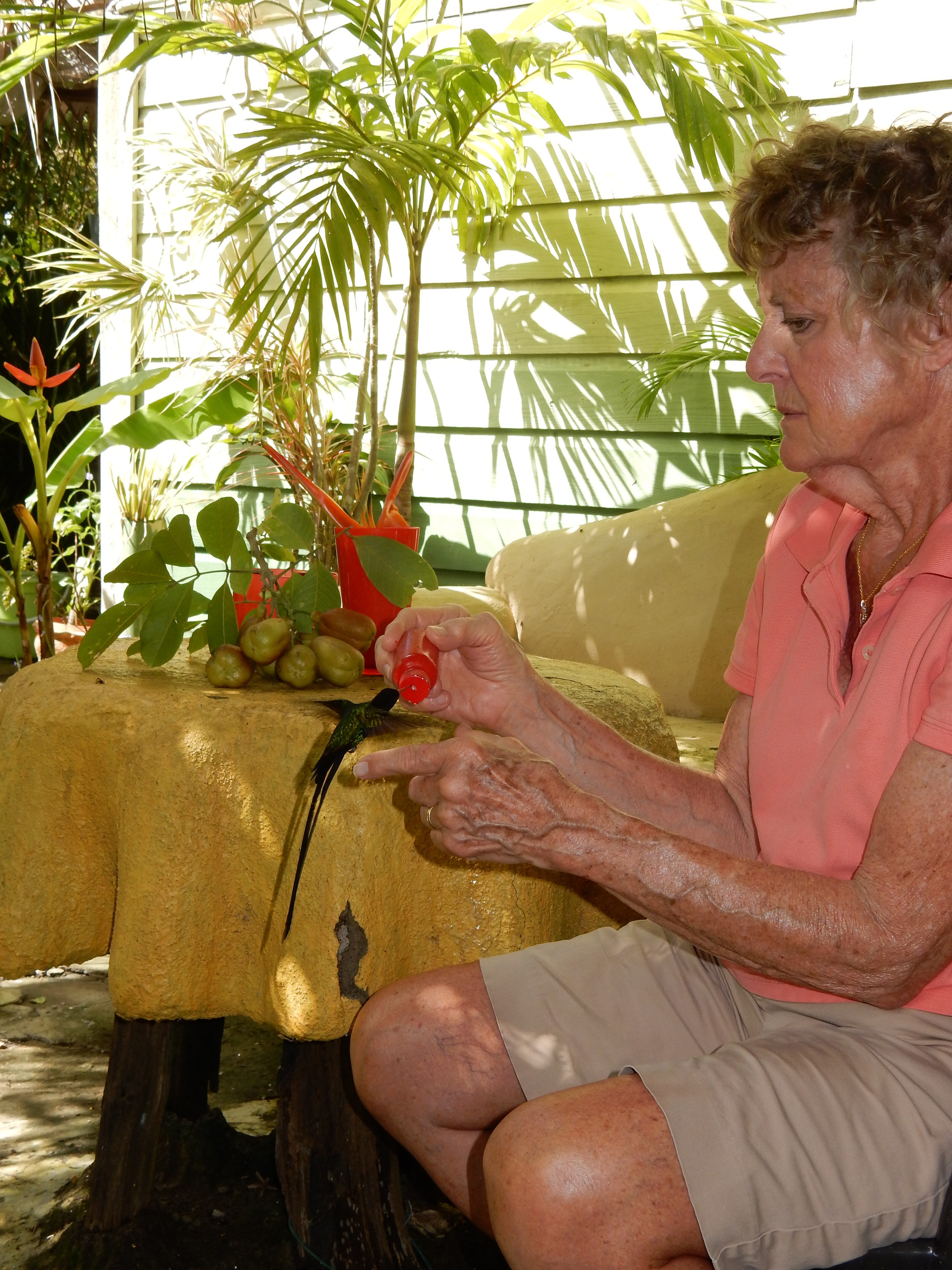Fred is the house cat and one of the most friendly you will ever meet. When rain starts he will go up on a porch and often curl up on a chair. If you are sitting in that chair he will be on your lap as long as you permit. Sometimes Fred will forget where he is and do his business right there....ugh, The many other photos were taken at Barney's Hummingbird, Jus' Natural and at our hotel. Enjoy.
