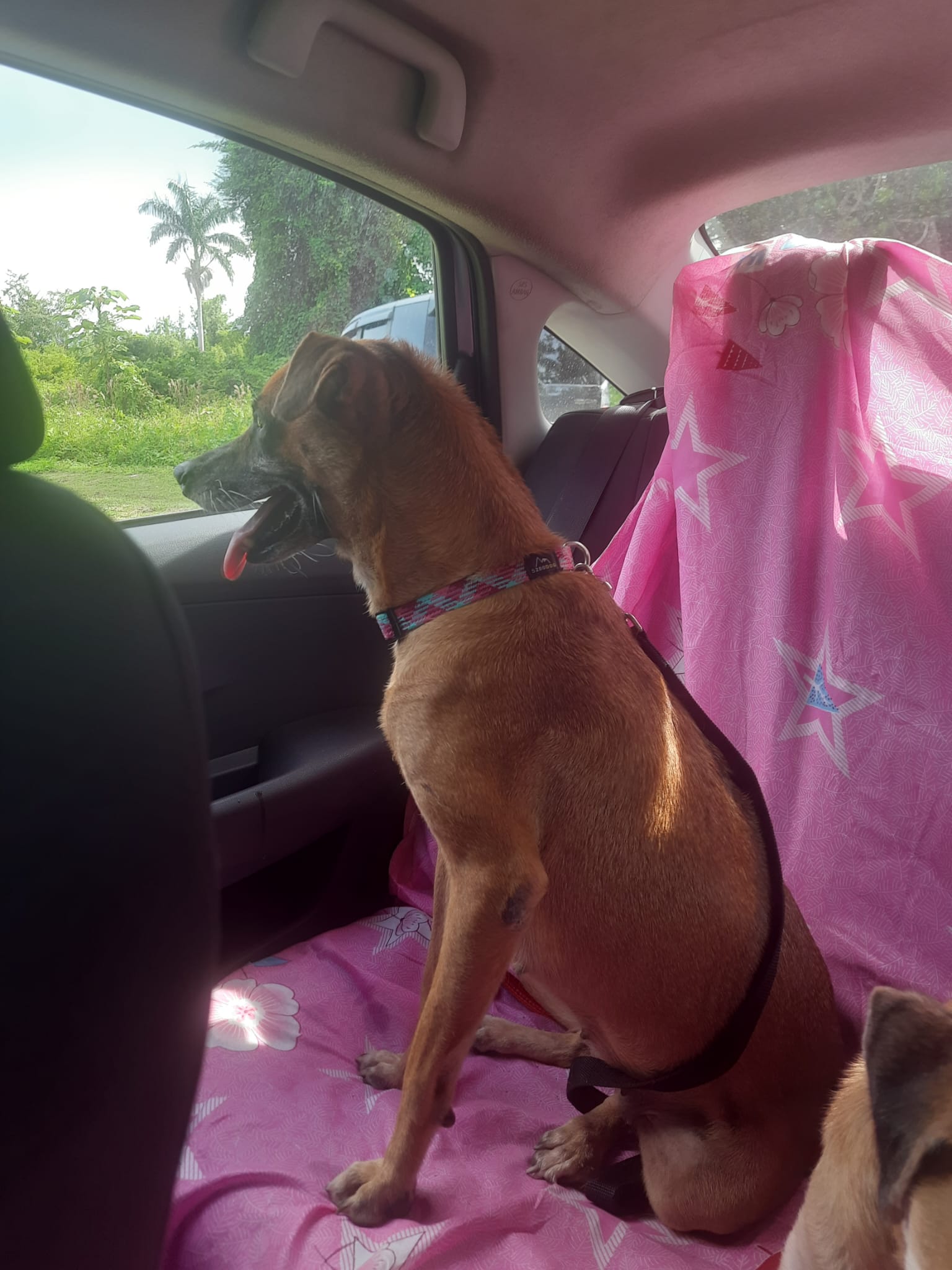 I wish I could be the escort! Knosie is such a sweetheart. Here pictured with her buddy Kocky patiently waiting their turn for their first check-up at the Negril Spay & Neuter Clinic on September 19