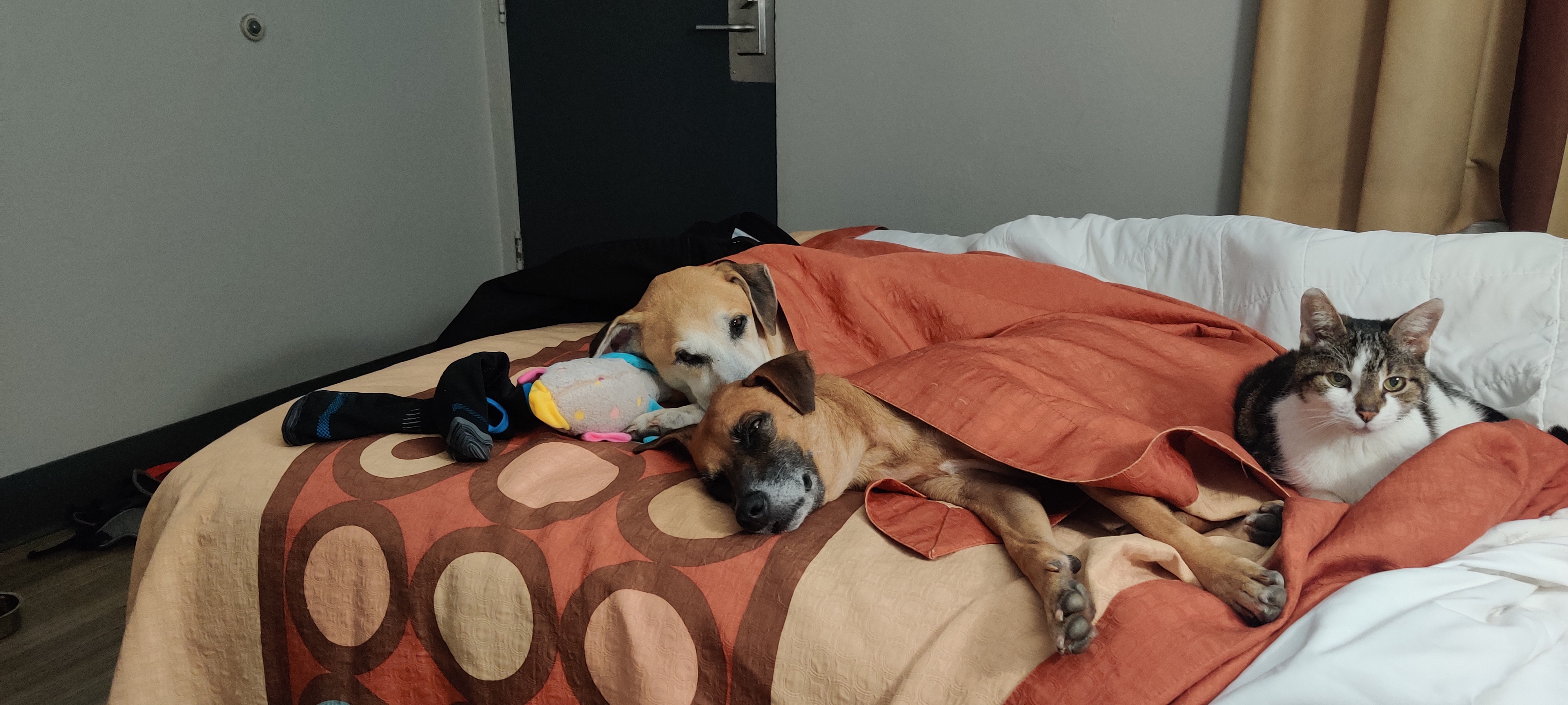 Staying in their first hotel room in colder Canada...