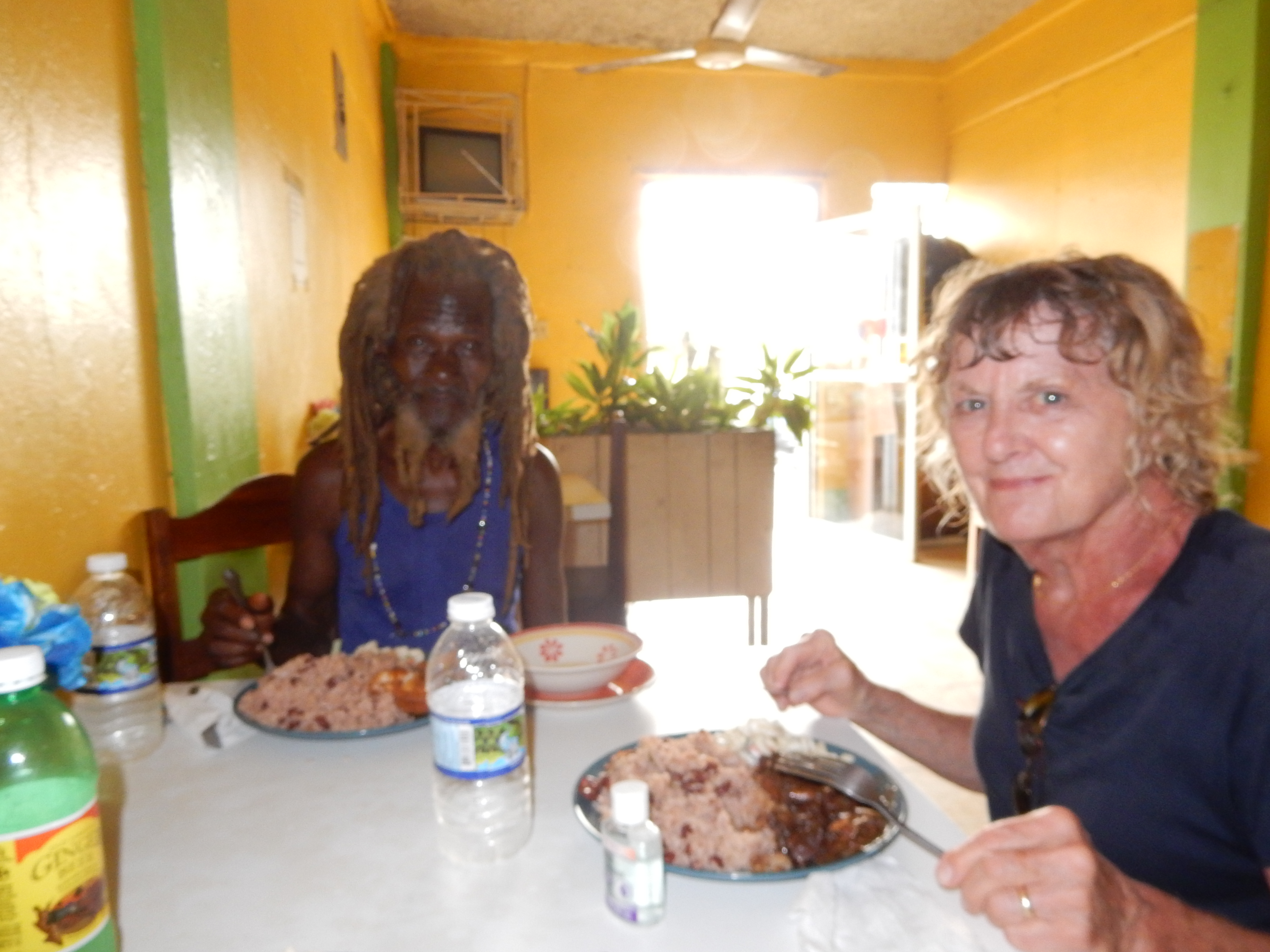 I have been trying to date each post because there is so much "old" information that has been circulating. We went up to Red Ground again to meet with our friend Markie. I had brought down a solar light with a 10 foot cord so it can be charged in the sun yet still give light in his shack. He has not had electric for the last 5 or 6 years. After we went down to Blossum's for and early dinner. We bumped into Petrona for the second time in 2 days!