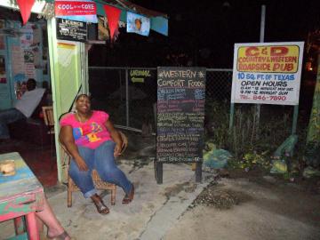 We have our token Caves drink, and time to move on. Our next destination is C&D Bar, also known as 10 Square Feet of Texas. Absolutely one of my favorite places in Negril. Connie/Dawn (1 person, seems like everyone in Jamaica has 2 names) is one of the nicest people you could ever meet. Great place to spend some time, enjoy her company, and have a drink or two. The cheapest rum punch in town (200J) also helps. We had a few drinks, and then called Seastar for a pickup. In a few minutes, the bus arrived, and we were off to see Luciano over at Seastar's reopening. Great venue, great music, wonderful time.