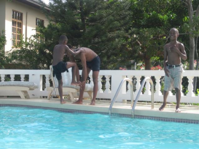 What was I thinking lol....5 boys over for the weekend. 19, 18, 11, 10 and 5. Oy! So cute to see their wonder at new surrounding. Swimming, football in the yaard, cartoons of course, popcorn, hotdogs, ice cream and lots of MESS and noise lol. Like a hurricane hit but I wouldn't have changed a ting......love my boys much and they are well behaved (for the most part lol) and older ones try to guide the younger ones.....