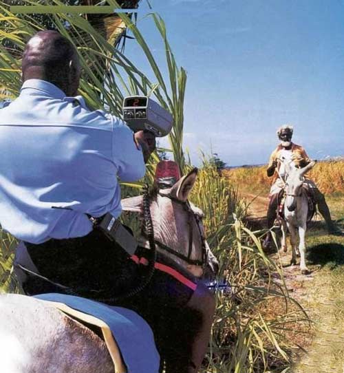 Got pulled over 1 day outside Lucy, swear to god as I was negotiating my way through the ticket a Rasta got pulled over, out of the car he comes arguing that their speed gun was broke, "I want a do over" he says, everybody is laughing and they let him go back down and come back through, sure enough he was under speed 2nd time