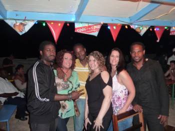 So we mingle for a bit and then I see someone I haven’t seen in YEARS!!!!! It’s always exciting to see an old friend and catch up on things. I look over and see Bobbie and Lisa surrounded by a group of guys so I go over to make sure everything is OK. These guys are from England and are just having some fun. Funny guys. I’m Not sure how the conversation turned in this direction but I somehow got myself involved in a bet on who would win a Daggering competition between myself and the English guy wearing soccer shorts and sneakers! HAHAHA! So as we try to round up our ride to Scrub a Dub a likkle fuss ensues. The driver the English guys are dealing with wants to charge way too much..I tell him no and he get’s pissed off at me for ruining his business….but we had a ride with friends so why would we pay for a ride? Turns out there are too many people for the one car so I reluctantly hop on the back of my friend’s bike and ride up to Scrub a Dub with him. White knuckles and all. It was NOT a scooter…I’m just glad I made it there alive and well! LOL. It was fun though!
