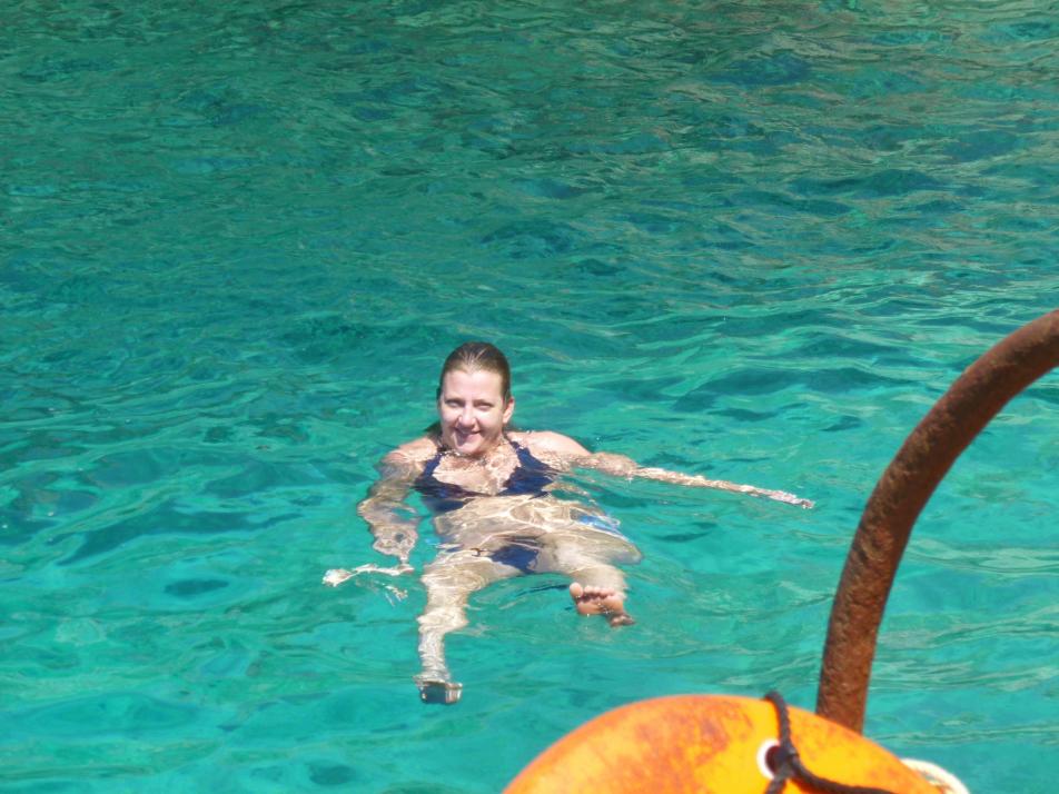 I have laid here for hours and do the occasional shuffle as soon as after awhile things go numb. I have my laptop out listening to various mixes usually kicked off by "Songs for Reggae Lovers", thanks Itunes for the mix. Sandie can't stay out of the water and constantly hits me up to jump in. I tell her I'm good where I'm at and lazily hop into the pool to cool off as needed. I had a big shark Fuk with me a few years ago, and I have yet to get over the spook. I do love jumping in, but usually hit the ladder in no time. I spent hours talking to the owner from Dream Team divers on my last reach and he added some comfort, so next reach I am in the water. Just call me flipper.