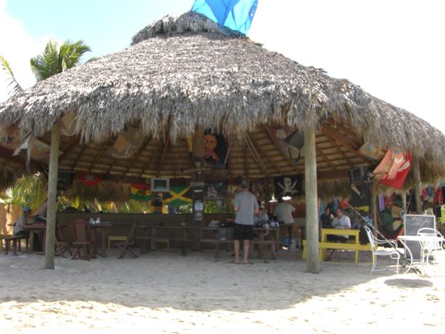 I dropped by the old 23/7 establishment last nite - now the only thing that's left is the thatch roof and some stumps that used to support the benches (I loved those benches) - only sand remains.