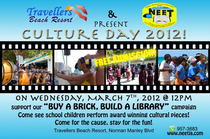 Culture Day will take place this year on Wednesday March 7th at 12pm and Wednesday March 14th @ 12pm at Travellers Beach Resort. Please come support this free community event in which students from local schools will be performingand there will also be plenty of other cultural aspects of the day. This event gives spring breakers an opportunity to interact with the local community and experience more of what Jamaica is all about. The "Buy A Brick, Build A Library" campaign is a big part of this event. People have a chance to purchase a brick for a small donation after-which they paint their names on those bricks which go toward building libraries for schools around Jamaica!