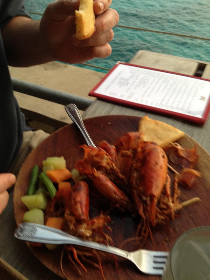 Example of dinner special at Treehouse - see photo Dinner last night: fish, shrimp, conch, and lobster (lots of it) simmered in a coconut curry broth with pumpkin and veggies on side. ExcellentAttachment 12641Attachment 12642Attachment 12643
