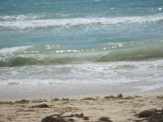 Headed to beach to meet a friend (Alfreds) and seas were rough there too. Waves beat me but it was still fun and refreshing. Ran into beautiful Bea and the Blandys. Order dinner to go (lime chicken, veg and salad: $850JD). Also picked up some tiny sweet banana, cane and mix CDs from Eddie. Great day - resting a bit hoping for more fun later......