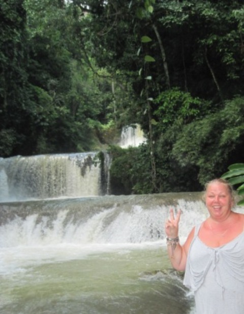 The grounds at YS felt like the rain forest and the flowers were amazing. We stopped for lunch when we left the Falls at the cook shop just up from the entrance (Henry's I think?) - great box food/soup. There was some wood by the bus and it was so beautiful I had to take a shot....The man said it was LOG wood and gave me a tiny piece.