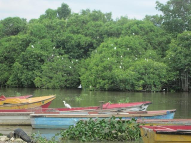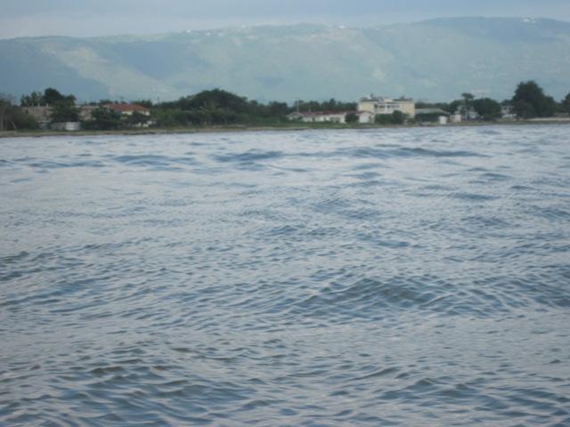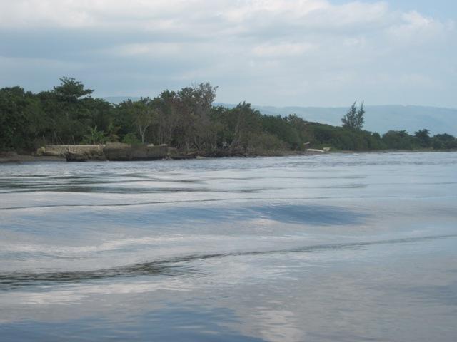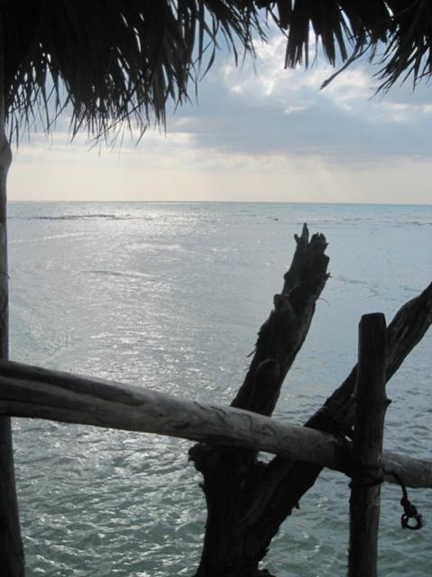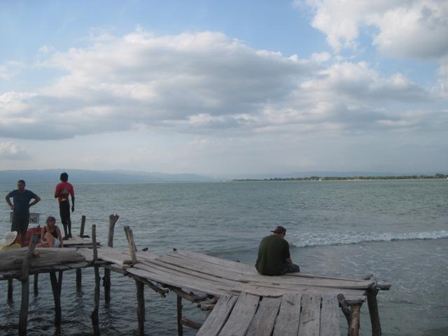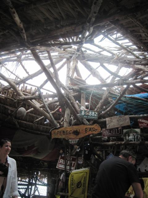 We arrived at Black River and got onboard some boats, put on our lifevests and off we went out to Pelican Bar (the ride was only $15US per person round trip). The scenery was breathtaking......the sea, the mountains and off in the distance a bar made from scraps of wood. Incredible.
