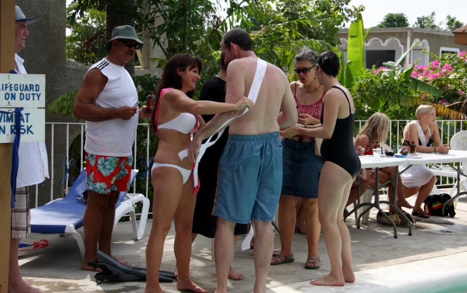 Sea Splash Bar. Jim singing with the newlyweds :)