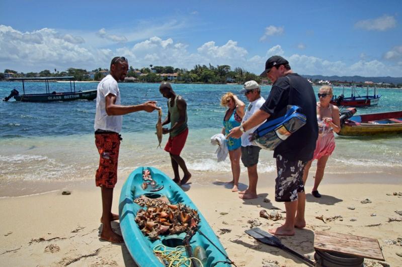 After getting towels we grabbed some sunscreen, put on bathing suits and headed to the beach to meet the boat and Famous Vincent. I have been travelling to Negril since 1990 and had never gone out with Famous Vincent before but remember his boat plying the waters over all those years. We all climbed aboard and headed to the reef. A couple of us just went along for the ride but GerryG and our friends went snorkelling. GerryG was using a speargun and made several trips to the boat to bring his catch in.