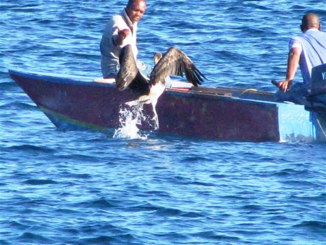I would love a pelican as a first mate on my boat. The pelican gets a free ride out. As the fisherman gets closer to the fishing grounds, the bird flies off and locates bait-fish for breakfast, fisherman proceeds to catch fish under the bait, both go home happy fishers.