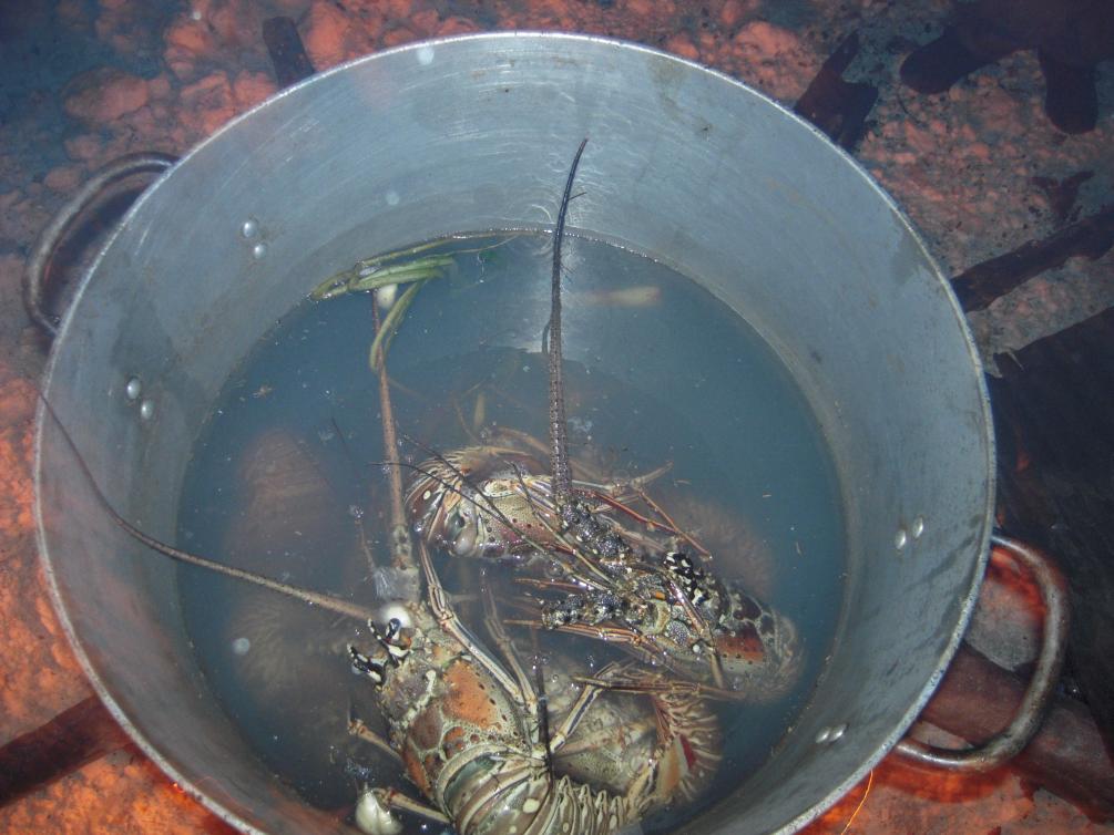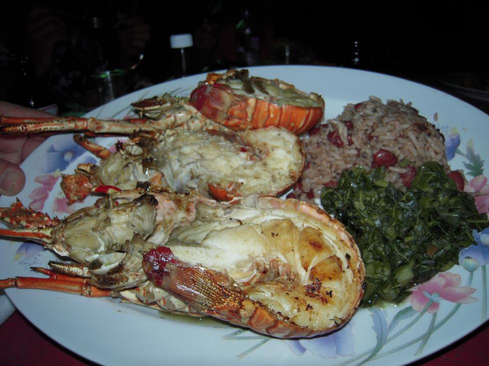 last feb i finally broke down and purchased a precooked lobster from the vendors on the beach, it was great, they provide you with a paper plate and split it in half with a squirt of lime and a fork, after that i had fresh cooked lobster on the beach almost every day, cost was 500 ja for one or 3 for 1200 ja, i will be feasting on them again in feb, soon come
