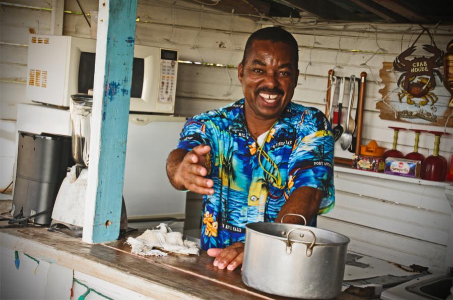 His place is up Pee Wee Lane a couple hundred yards on the right hand side. If coming from the beach you will turn left right after Blue Cave Castle. You will also see his billboard as you are turning.