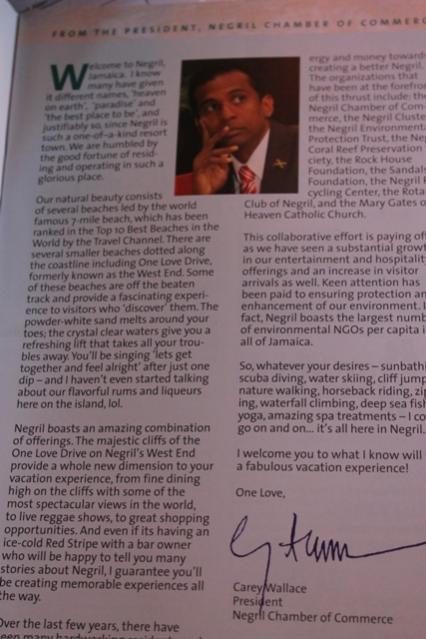 I always like to pick up one of these Negril Guides - always pretty pictures...and some good information. It is prepared by the Negril Chamber of Commerce and its free and can be found all around town.