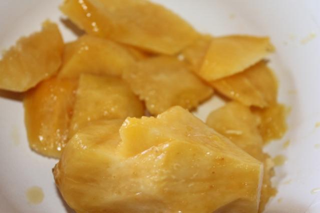 So Plum the fisherman gave me yesterday was DELICIOUS....tasted a bit like pineapple but cut up like a mango. So so good. It was yellow...I guess they are light green to start which is what I have seen made to juice.