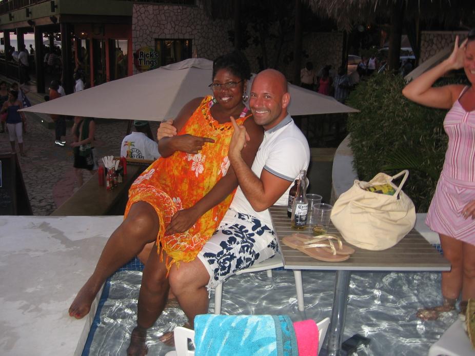 Day 2 Saturday- I decided to let my friend know I was in town so what better way to do it than to pull a pank : ) I had the nice receptionist at the front desk, all the number and say that a couple was given his number ( as he is a driver) and they wanted to meet him face to face to discuss tours. Of course he fell for it LOL! I sat at the bar having coffee until a resrt employee came to tell me I had a guest....Out I walked there he stood, he looked at me as if he'd seen a ghost! He was very shocked and happy all at the same time...I love it I'm just full of surprises...earlier I had met two nice young ladies from Holland and we had decided we would take the shuttle to Legends and spend the day on the beach as it is the sister resort to Samsara. Well since Mr. Driver was now on da scene I basically spent the day lounging and talking with him...the two girls & I did get in the water which felt wonderful, and then me....with my mouth again met some other folks in the water from Holland, and I met a nice young man from Seattle who was there for a wedding. Well since I grew up in Seattle we instantly clicked! Of course since I'm and old married woman I always play match maker with folks, so I got him talking to one of the young ladies from Holland. It was a hit....they talked literally all nite! So long story short we all got a table together talked had drinks and Mr. Driver said have you all been to Rick's ....they hadn't so off we all went packed into his car to Rick's for the sunset. We had a BLAST! Shots, more drinks....laughter, pictures with Bruce Willis look alike....OMG I thought this was going to be my quiet ME TRIP! So the girls wanted to go out that nite....and they wanted, begged me to promise to go with them....it was on....10:00pm Mr. Driver came to pick up the crew...and off we went to The Jungle....Dang I'm to old for this S_ _ _ I kept telling myself LOL!!! but I kicked up my heels a bit....until bout 1am I was cooked....and we all decided to call it a nite or should I say morning, because the girls & I wanted to go to church in the Morning.